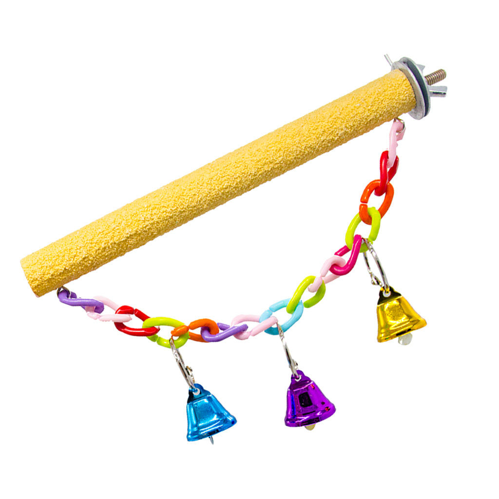 Maxbell 2 Pcs Bird Cage Toy Parrot Wood Stand Rack Toy Branch Perches with Bells
