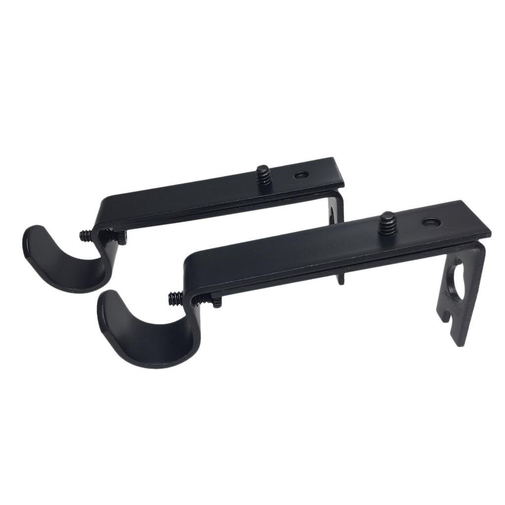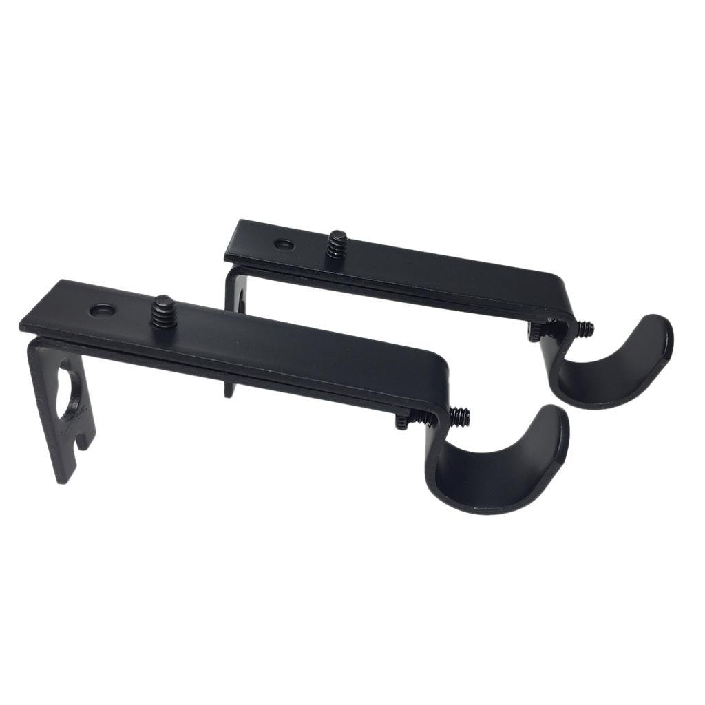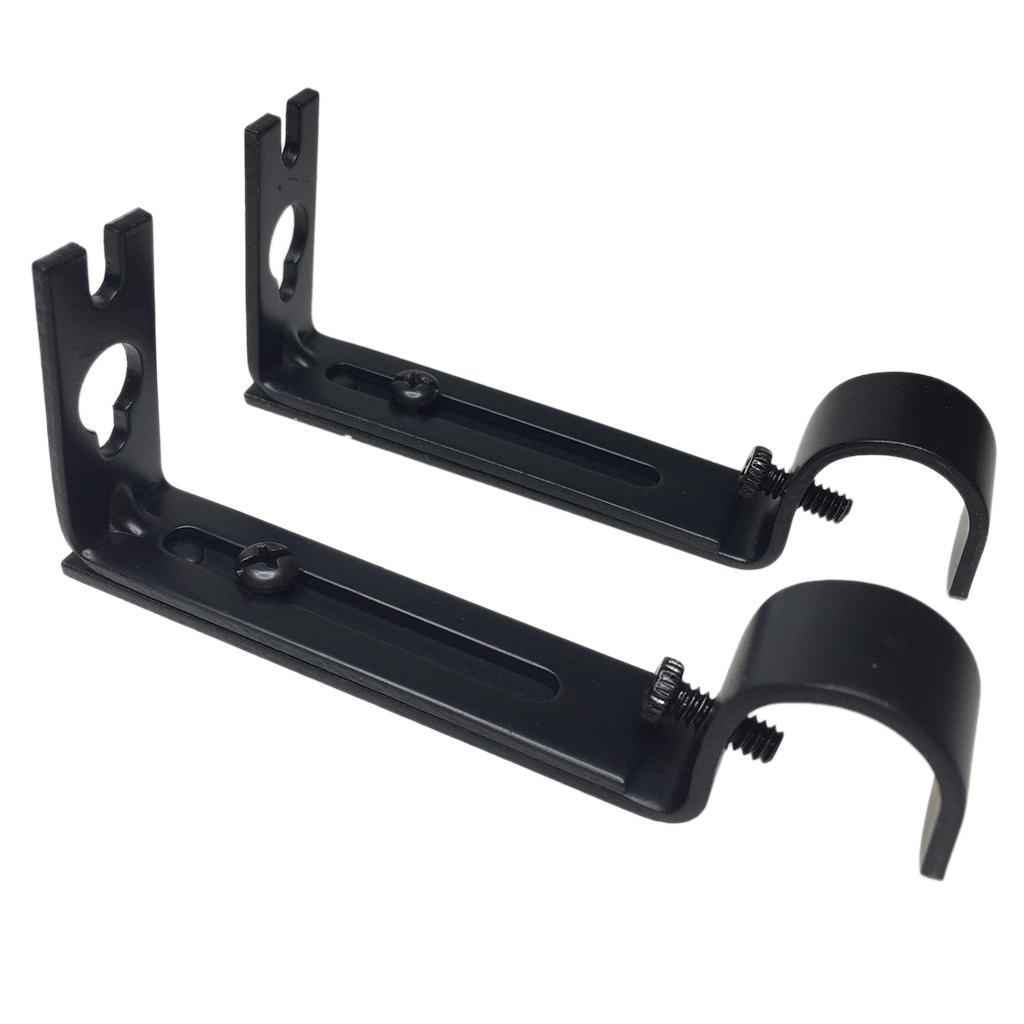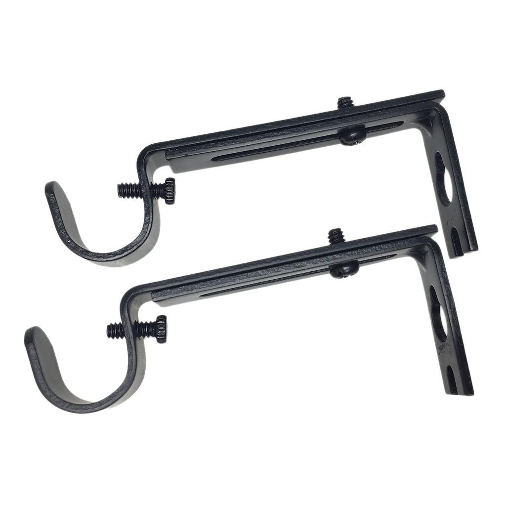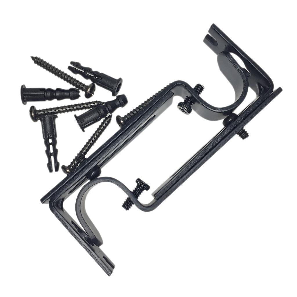 Max 2 Pieces Adjustable Metal Curtain Pole Rod Wall Bracket Hook Holder Black