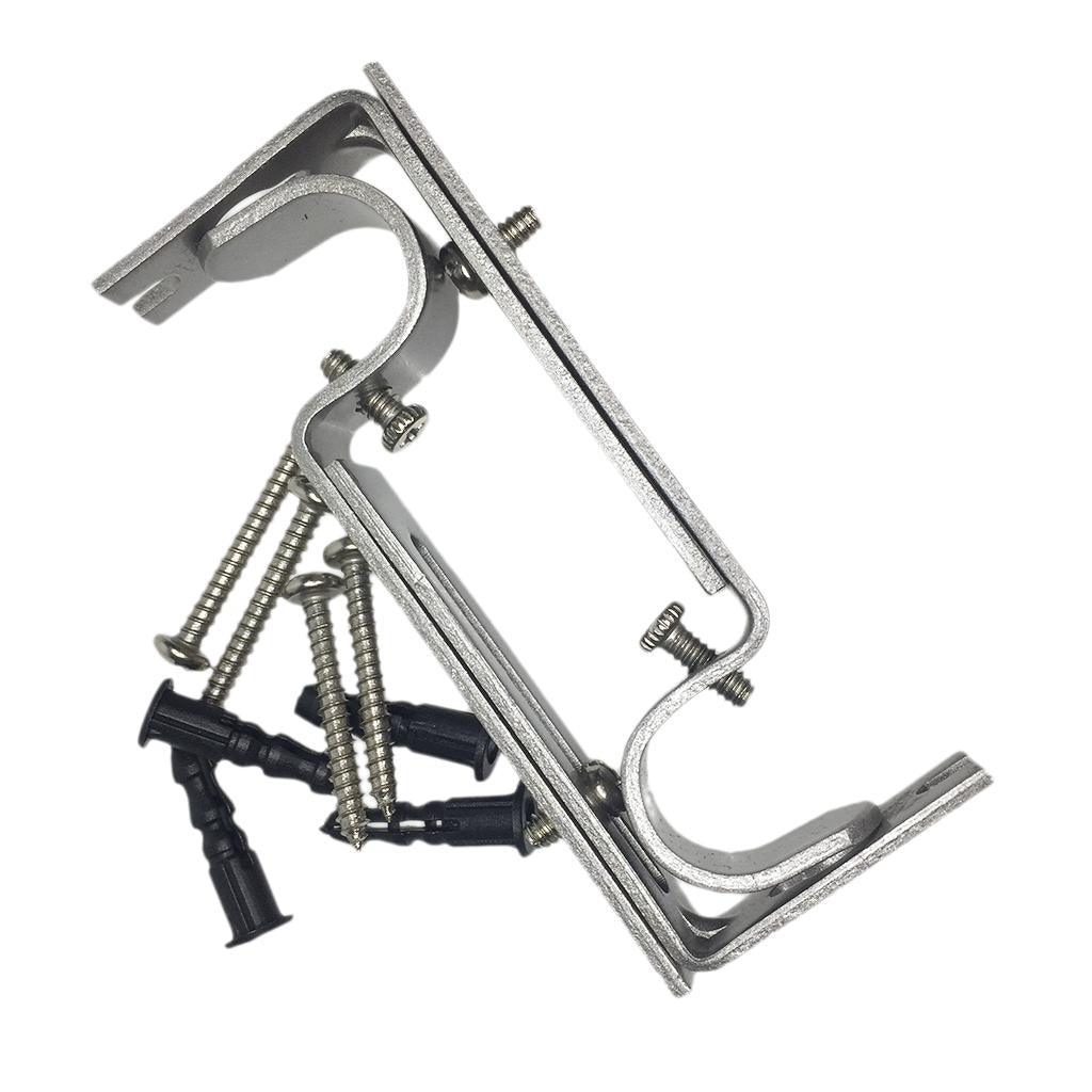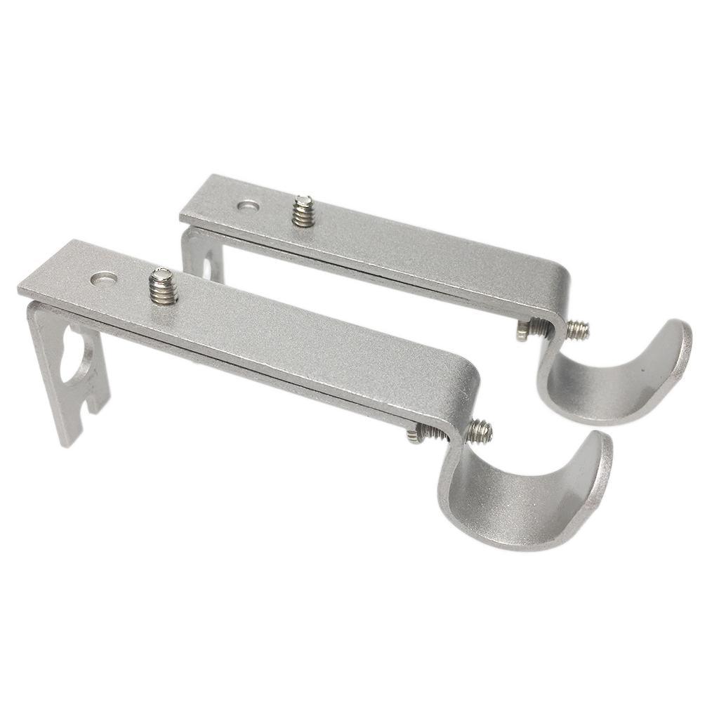 Max 2 Pieces Adjustable Metal Curtain Pole Rod Wall Bracket Hook Holder Silver