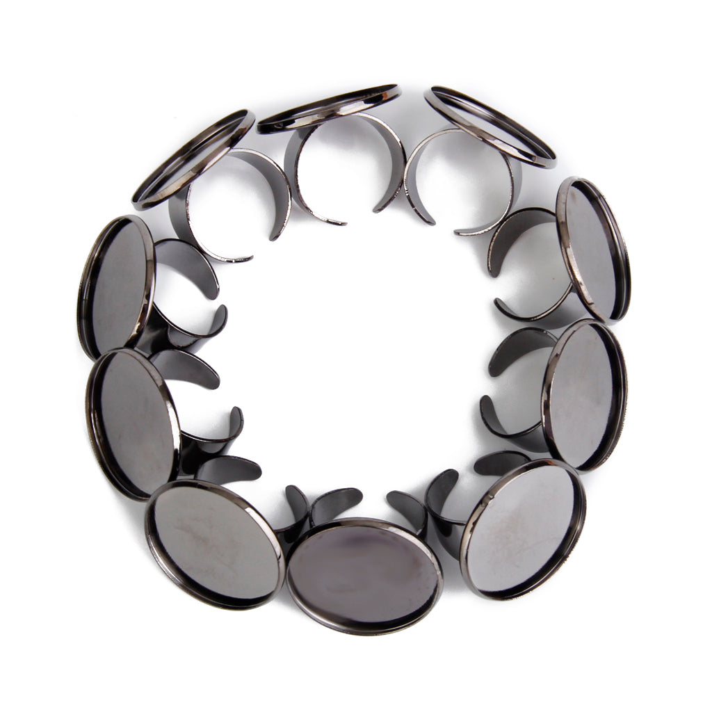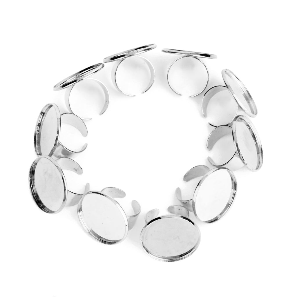 Maxbell 20 Pieces Adjustable Brass DIY Blank Ring Bezel Base for 25mm Cabochon