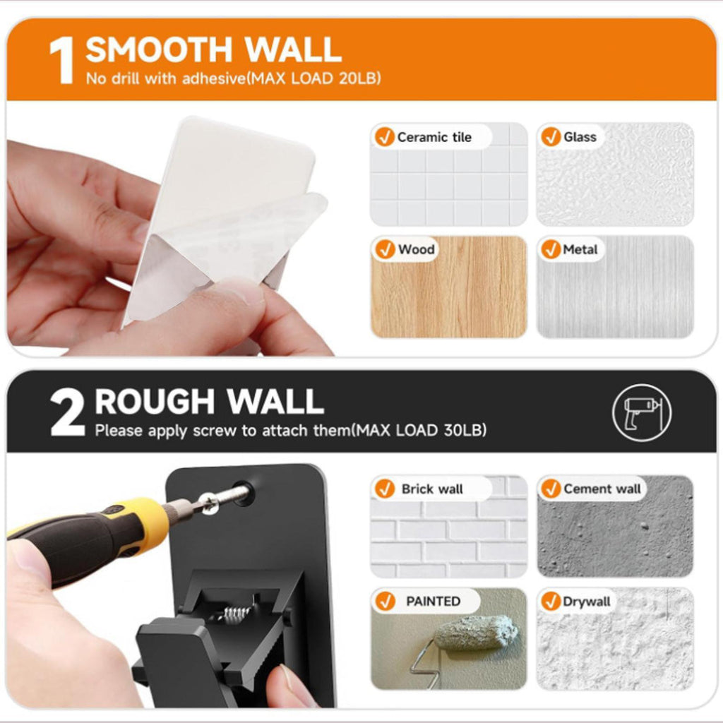 - 【Wide Compatibility】: Suitable for most rods, this curtain rod holder boasts a strong load bearing capacity of up to 20lb (if using adhesive), load 30lb (when use screws), making it ideal for use with bathroom towel rods and curtain rods