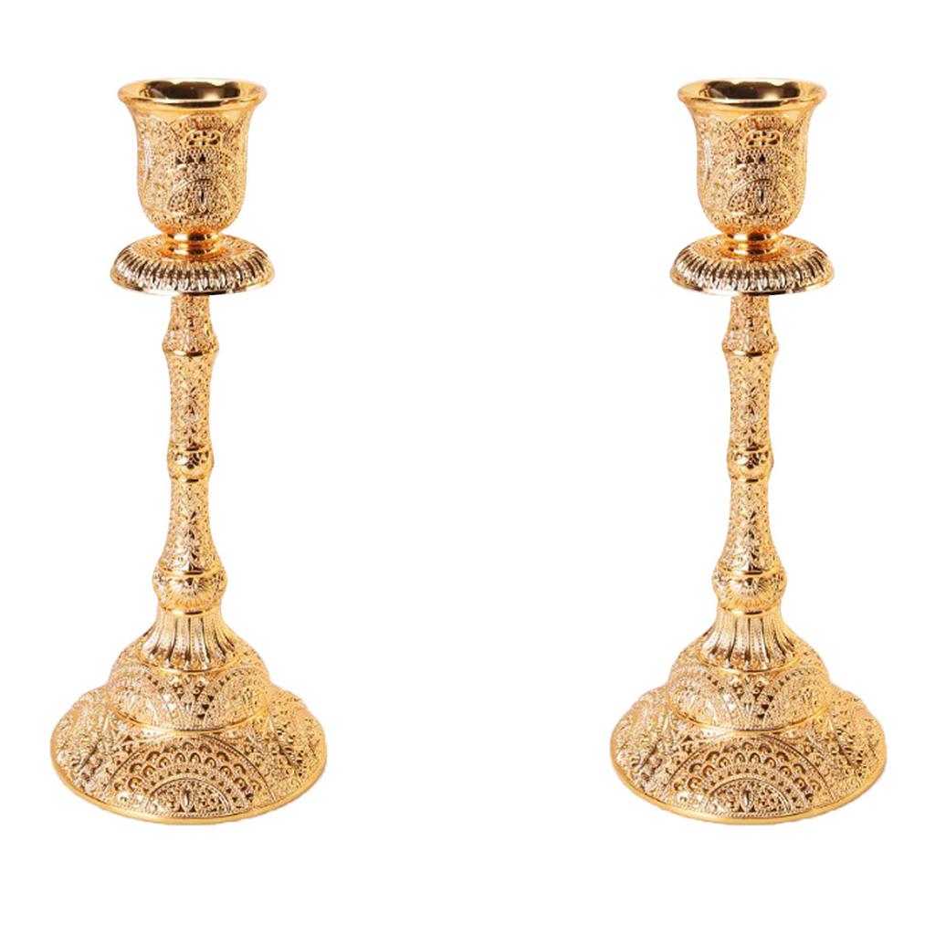 Pair of single arm metal candelabra, luxurious decorations for desktop dispaly.