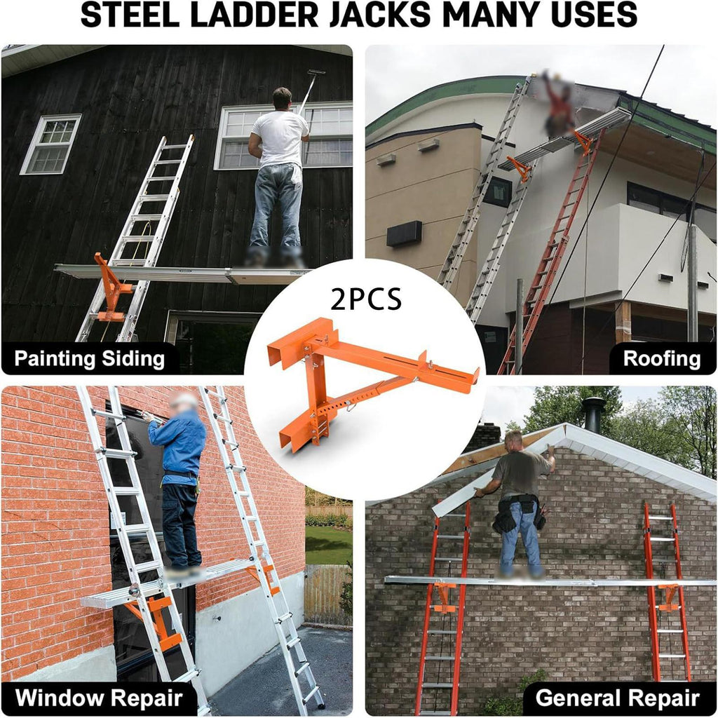 【Versatile Compatibility】: The adjustable ladder jack set is designed to be compatible various platforms, allowing installation on both the inside and outside of ladders. This feature enables safe and efficient work at heights