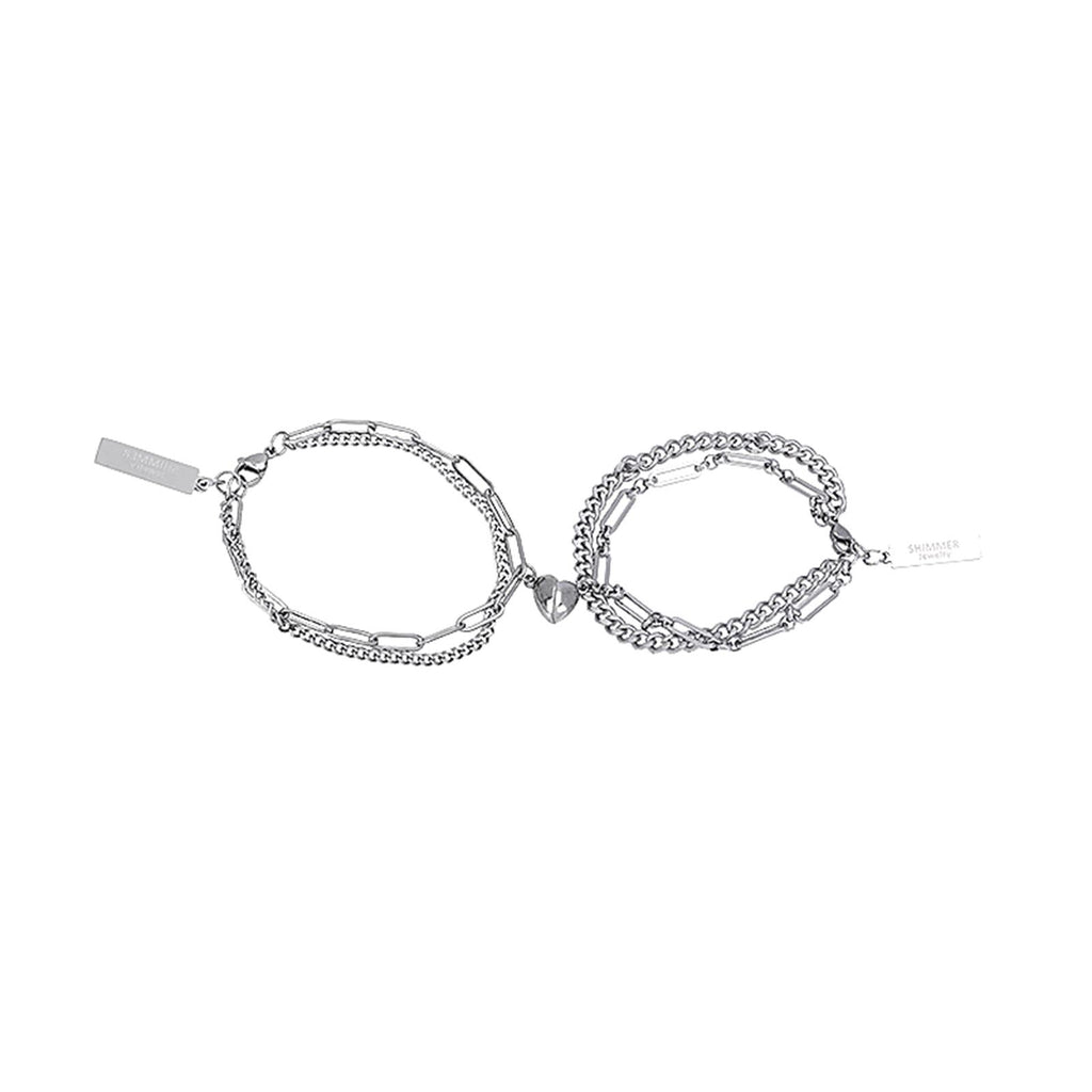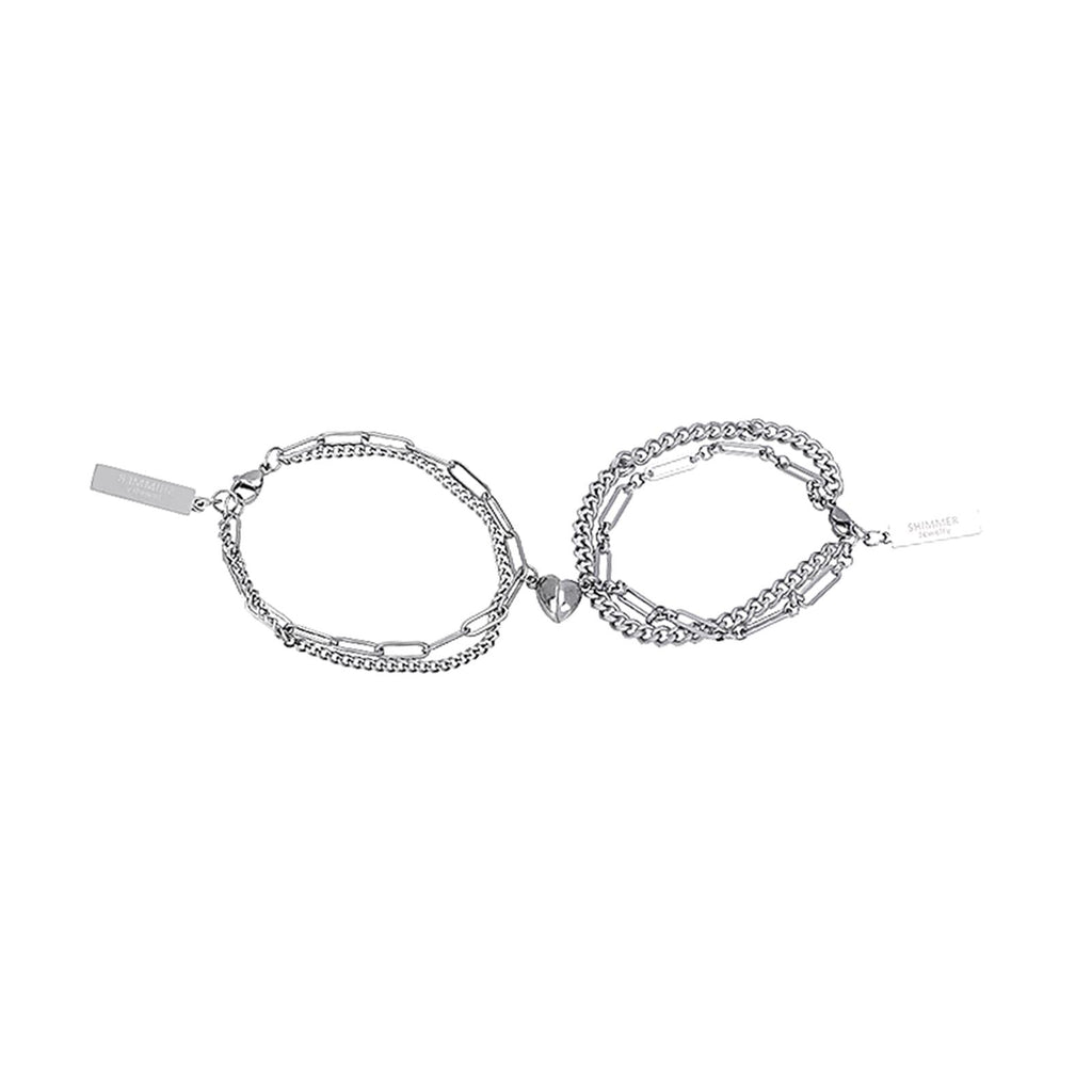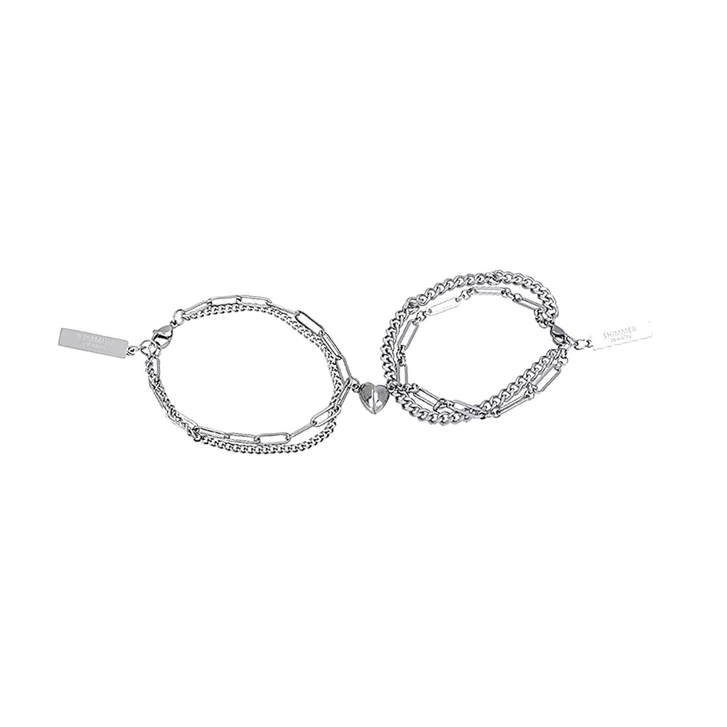 Maxbell 2Pcs Titanium heart Magnetic Couple Bracelets for Boyfriend Girlfriend