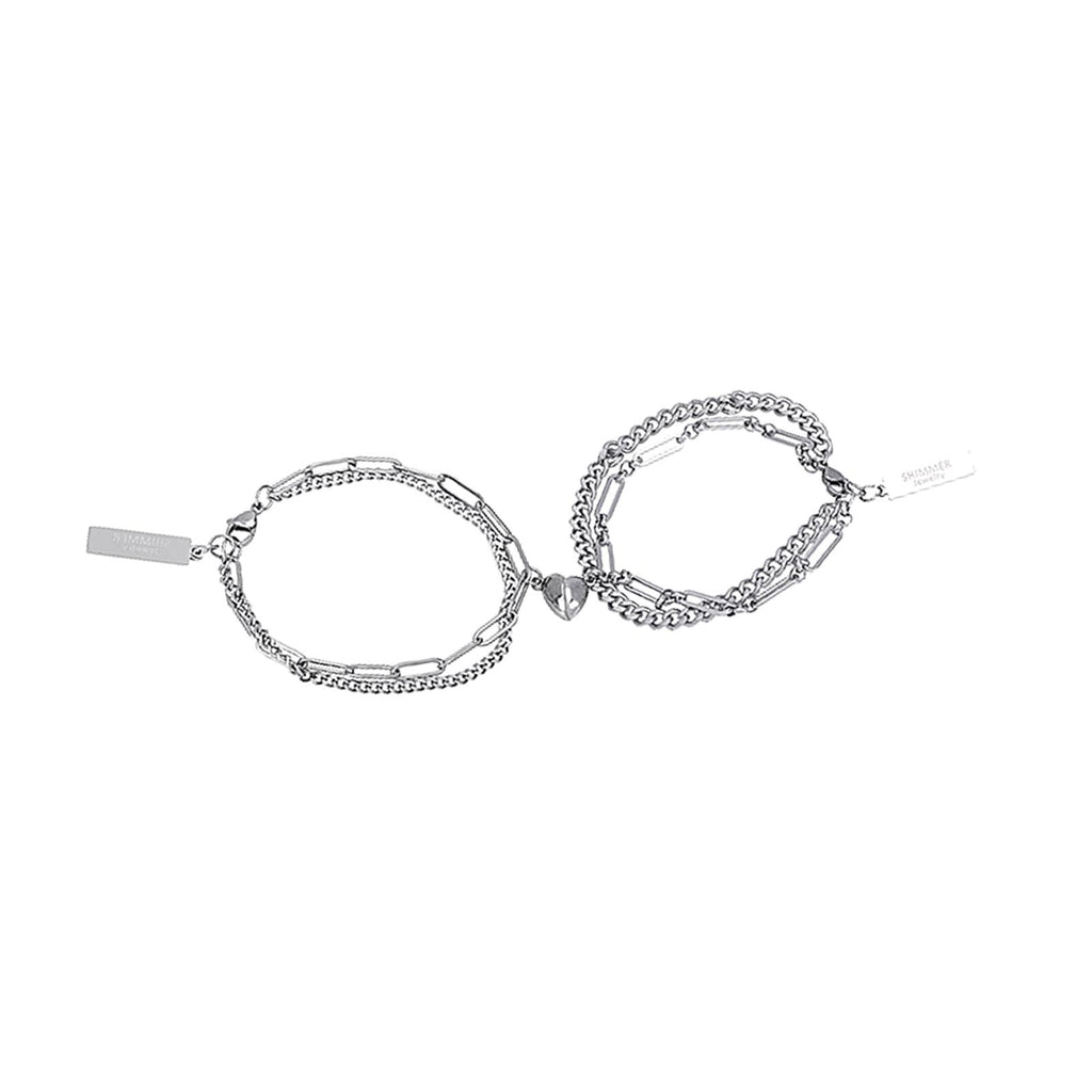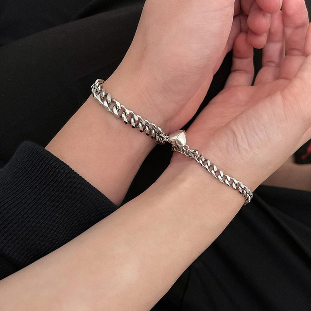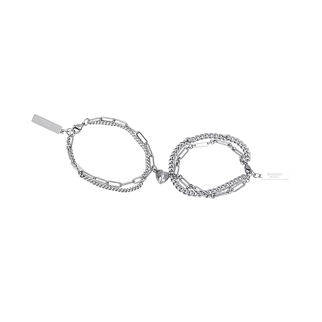 Maxbell 2Pcs Titanium heart Magnetic Couple Bracelets for Boyfriend Girlfriend