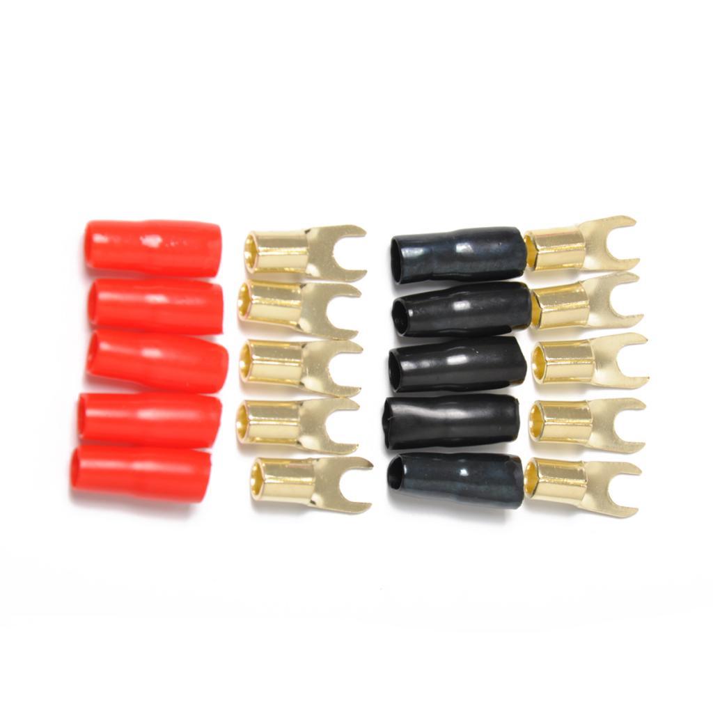 Maxbell 2x5 Pairs 8 AWG Car Audio Power Ground Wire Fork Terminal Connector Brass