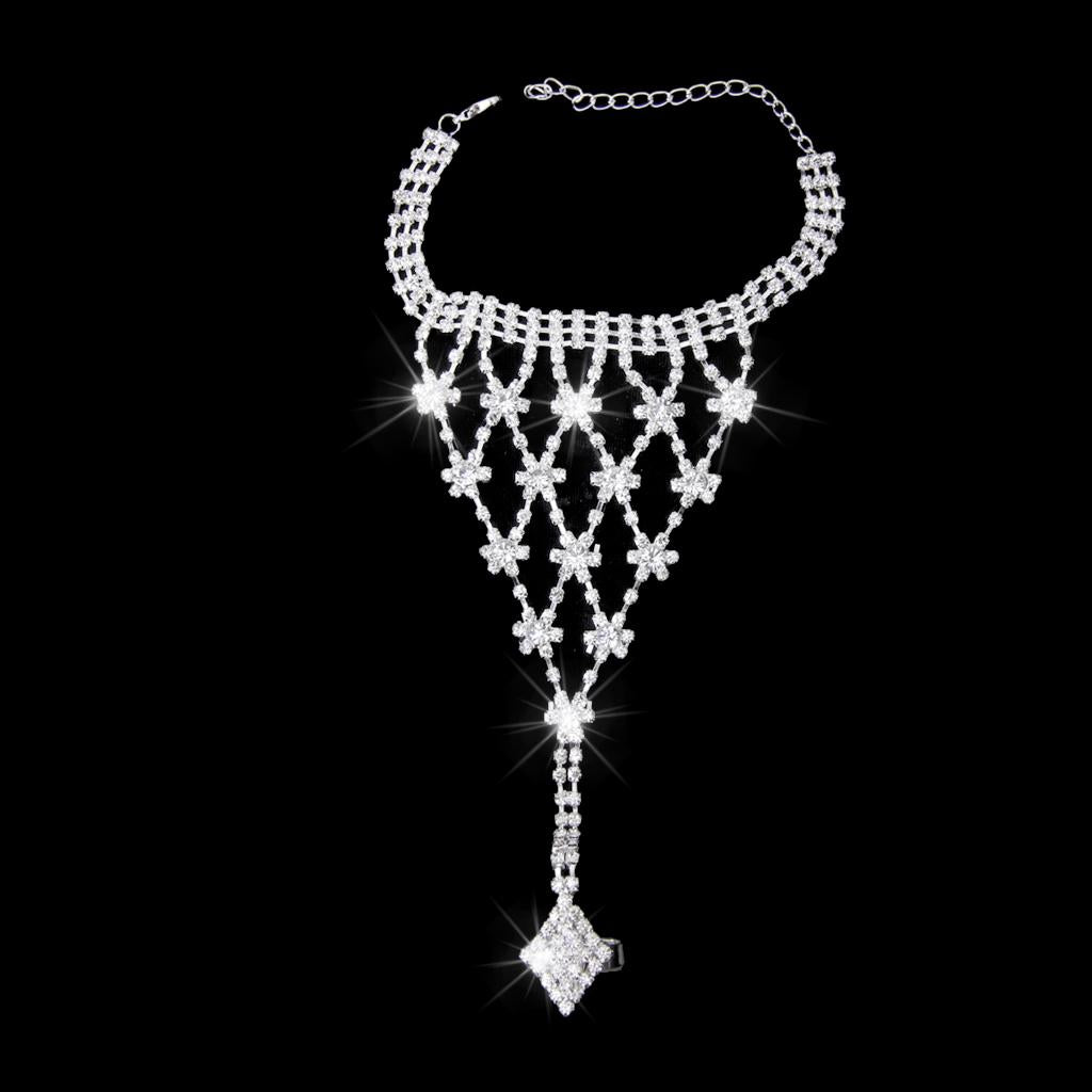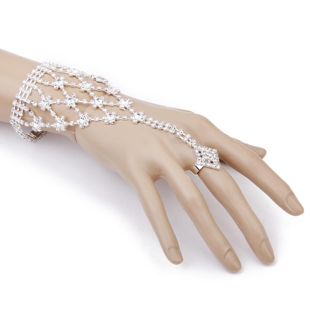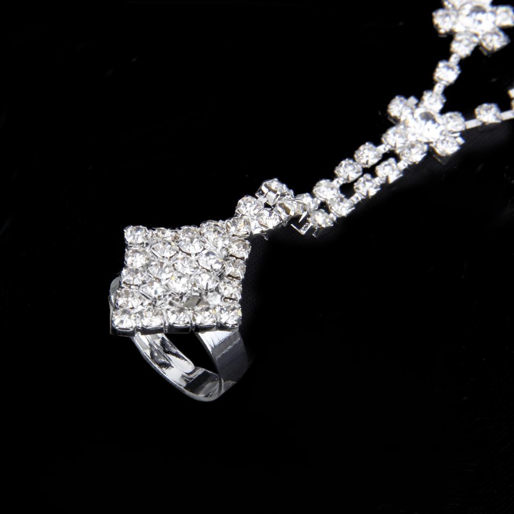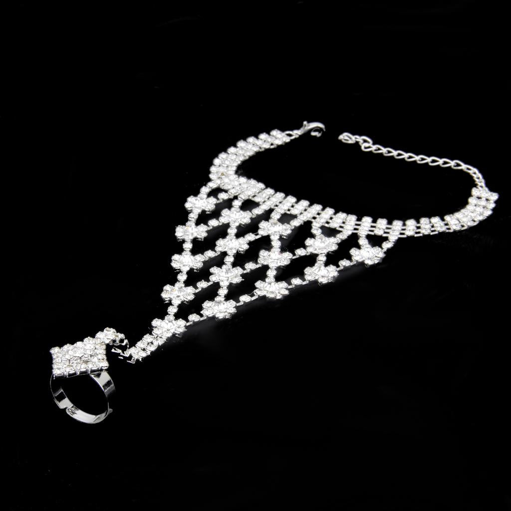 Maxbell 2xCrystal Flower Chain Ring Hand Harness Bracelet Bridal Jewelry Wedding Party