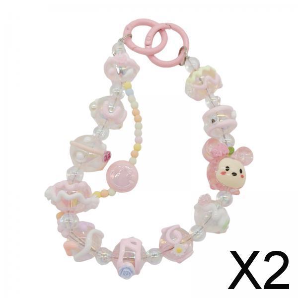 Maxbell 2xKey Ring Bangle Chain House Car Keys Ring Holder Beaded Key Ring Bracelet Pink
