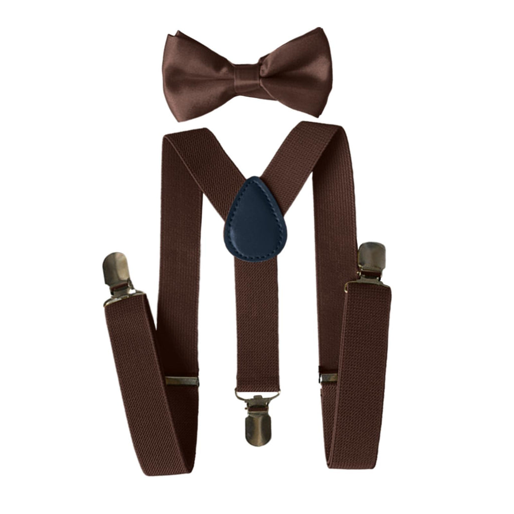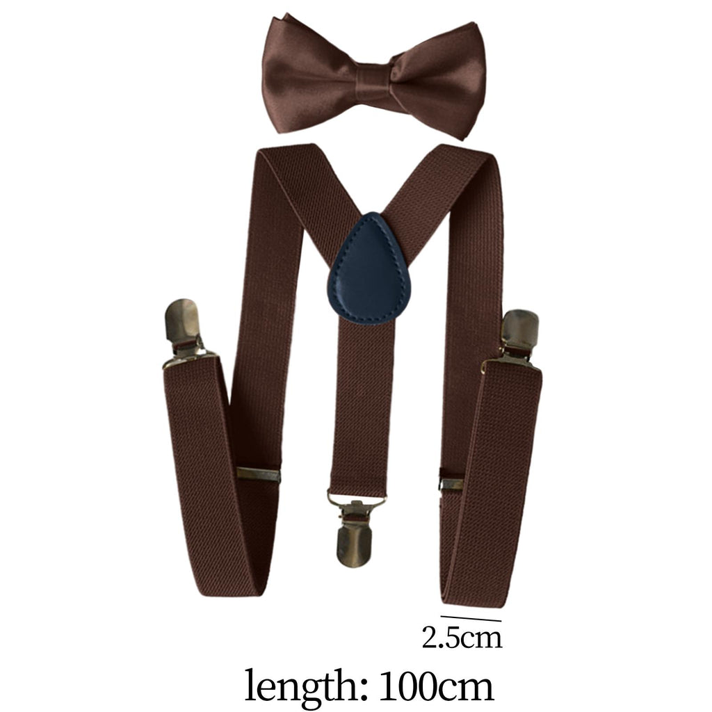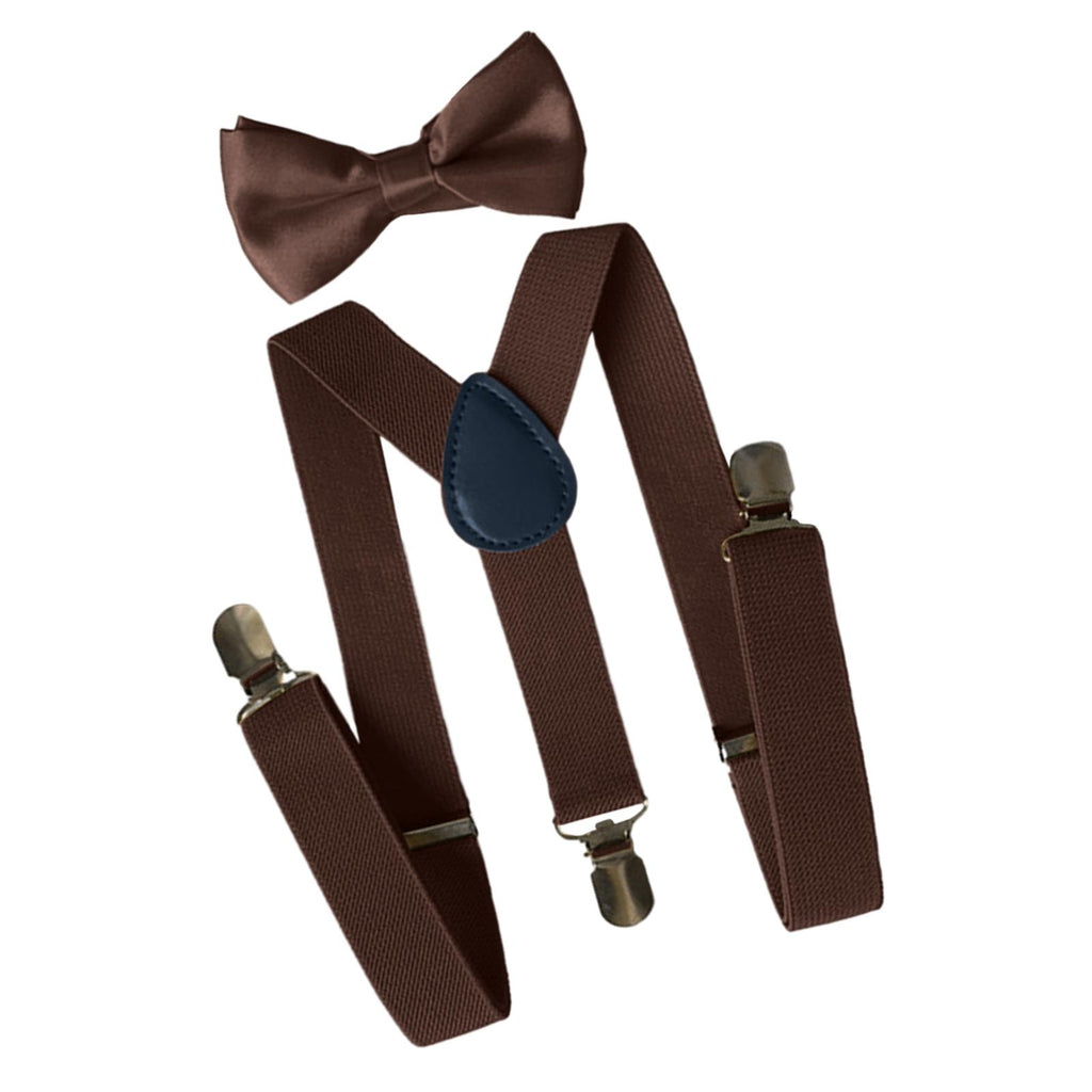 Maxbell 2xMens Suspenders with Bow Tie Y Back Braces for Formal Wear Halloween Cosplay Brown