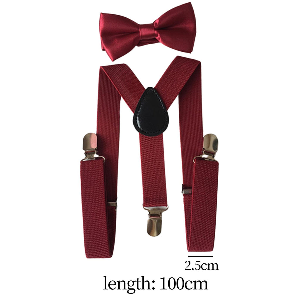Maxbell 2xMens Suspenders with Bow Tie Y Back Braces for Formal Wear Halloween Cosplay Dark Red