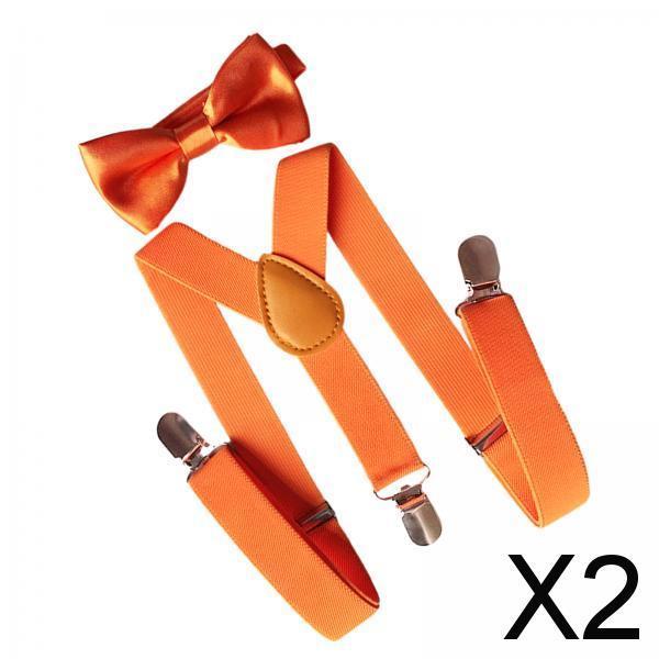 Maxbell 2xMens Suspenders with Bow Tie Y Back Braces for Formal Wear Halloween Cosplay Orange