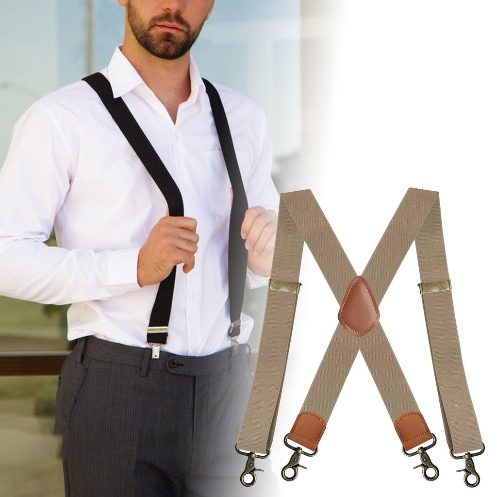 【High Quality】Our men's braces for trousers with strong clips are made of elastic polyester, with connections made of faux leather and 4 durable swivel hook clips to showcase exquisite.