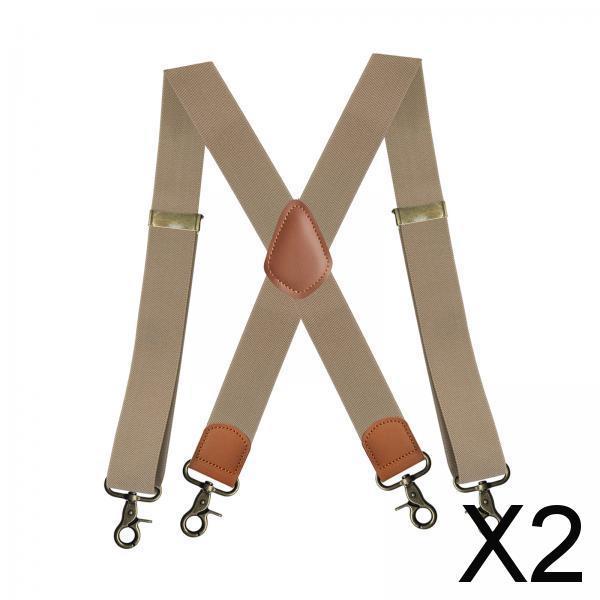 Maxbell 2xSuspenders for Men Heavy Duty Suspenders Adjustable Casual 3.5cm Wide Braces Beige
