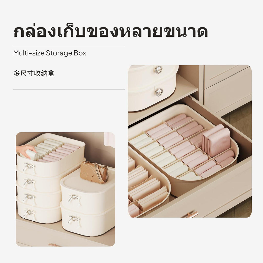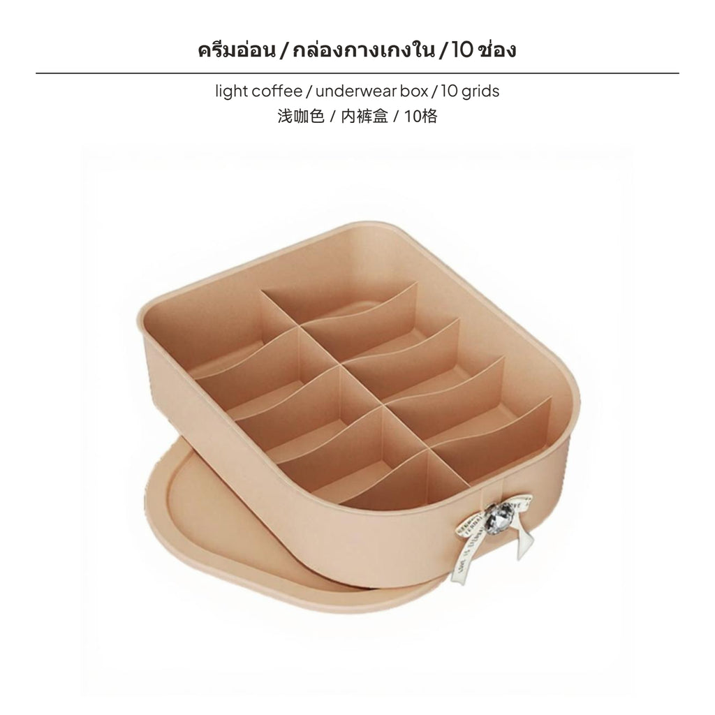[comprehensive Storage Solution] This 3-piece underwear organizer set combines space-saving stackable design and multi-compartment choices, ensuring neat separation for bras, panties, and socks in any drawer or closet.[Premium Material & Elegant Look] Crafted from high-quality polyplastic with polished rounded edges and decorative ribbons, each box offers an odorodorless, sturdy feel and French cream aesthetic to elevate your home.[Flexible Combination adaptable Use] Choose from 0compartment, 10compartment, or 15compartment choices for optimal item sorting. Great for home, bedroom, closet, or drawer organization—find your essentials instantly.[Easy entry elevateTop Design] The elevatetop, slotted framework allows quick opening and effortless item retrieval, making frequent dressing and storage streamlined and efficient.[Breathable & Moisture-Resistant] Built-in ventilation helps prevent odor and moisture buildup, protecting your intimate garments and ensuring freshness all year round.