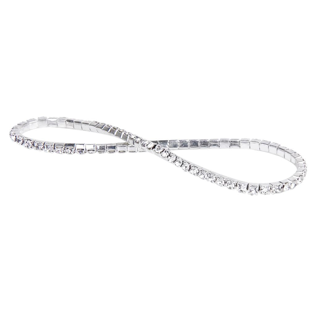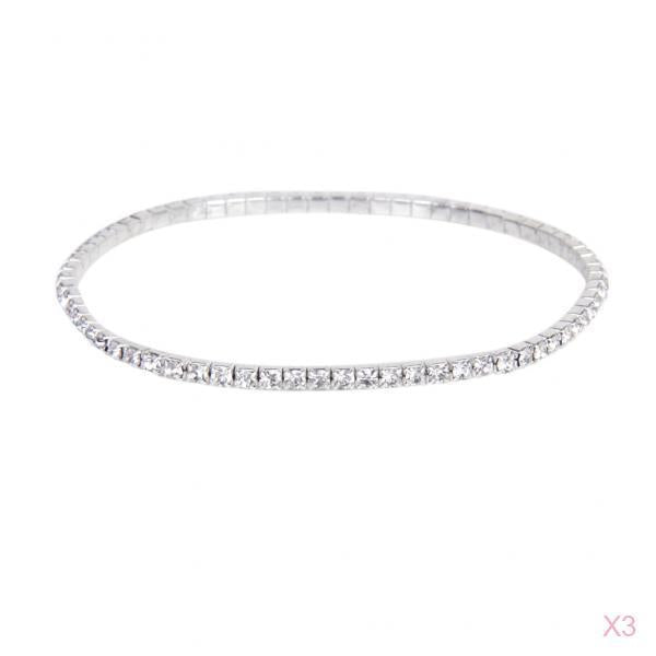 Maxbell 3 Stk.Fashion Silver Tone Crystal Rhinestone Ankle Anklet Bracelet Single Row Elastic