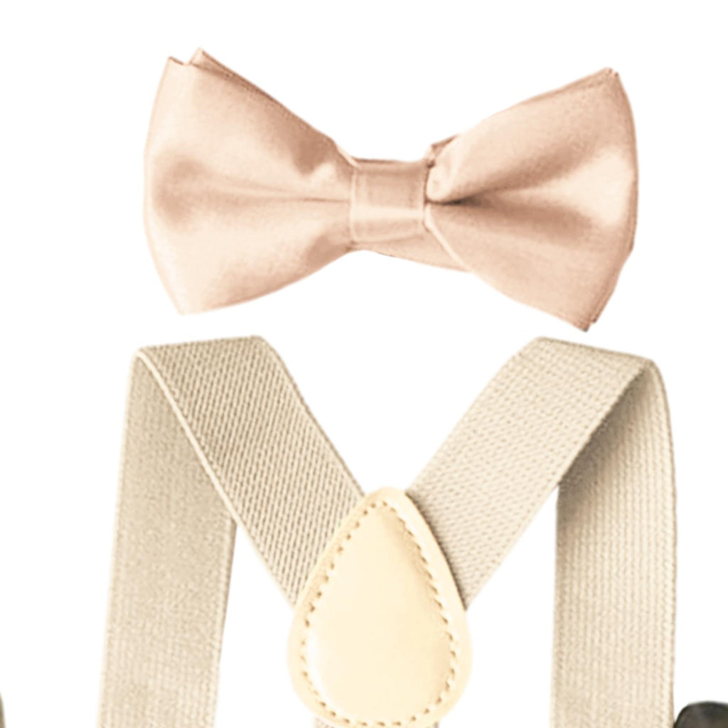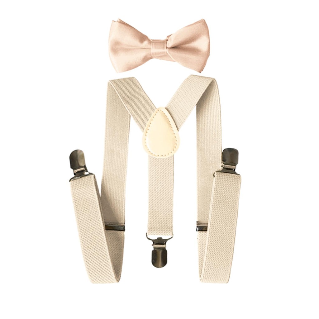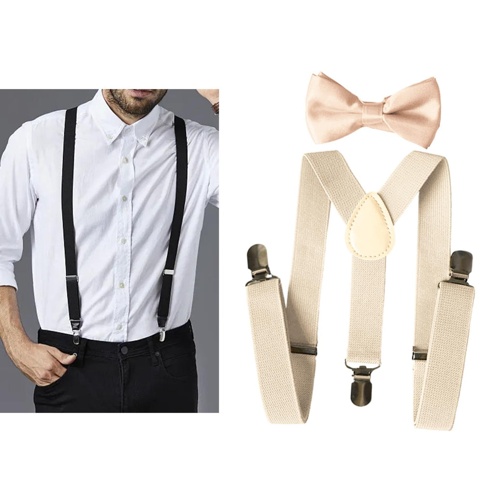 Maxbell 3xMens Suspenders with Bow Tie Y Back Braces for Formal Wear Halloween Cosplay Beige