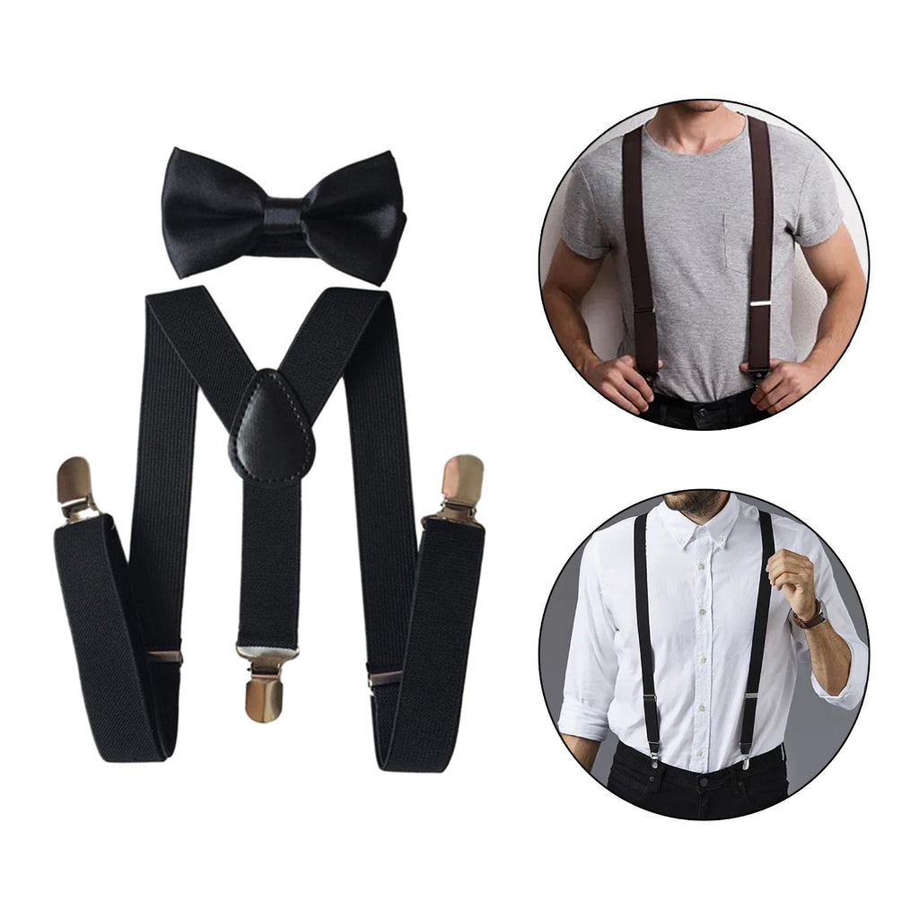 【Package Include】: stretchy bow tie suspender set Include 1 bow tie, and 1 Y shape adjustable brace, enough for you daily wear.