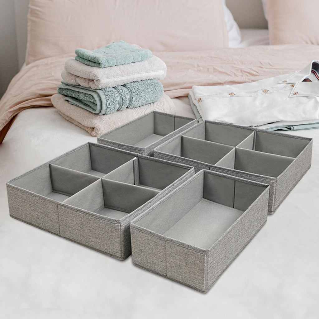 Maxbell 4 Pieces Drawer Organizer Practical Closet Organization for Belts Socks Bras Gray