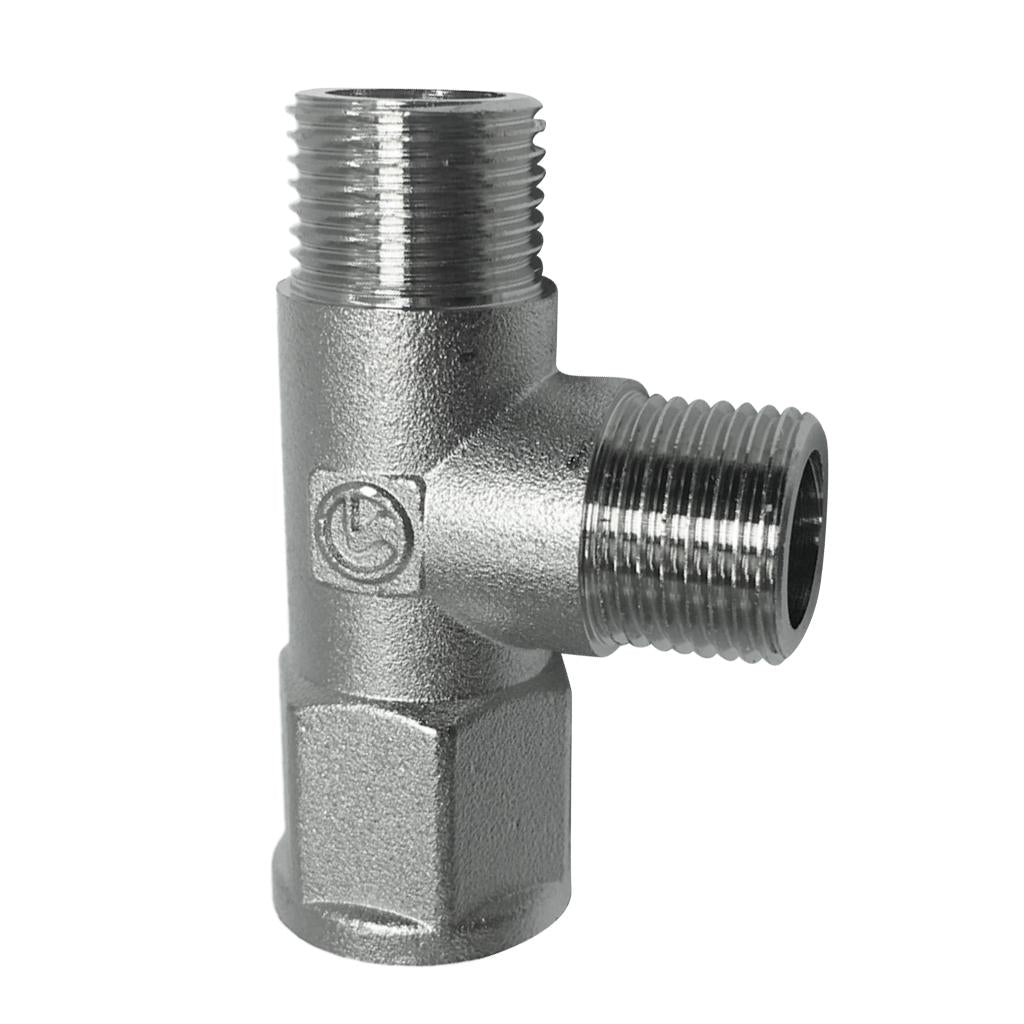 4 points inside and outside copper tee (appearance nickel plating), 4 points = G1/2" (inch) = DN15 = 20mm (thread diameter)