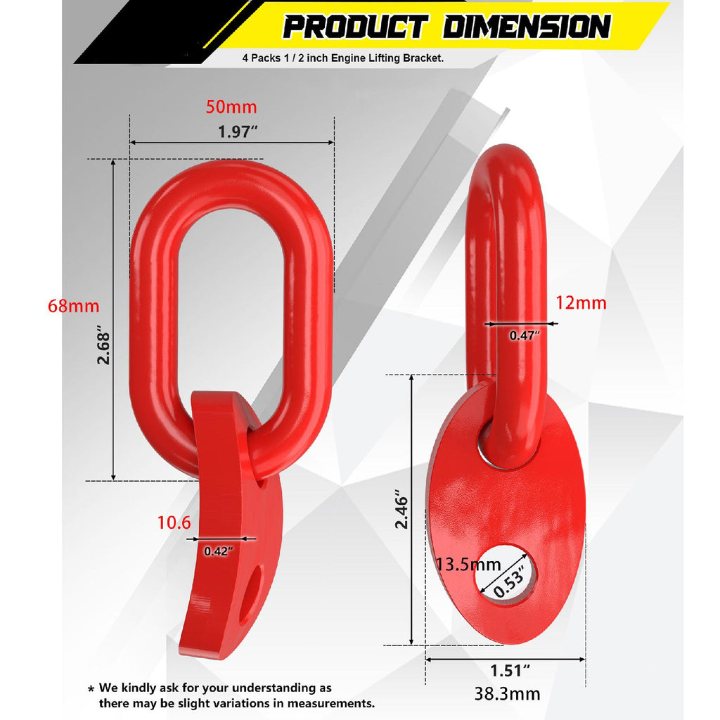 【Versatile 4 Pack Set】: Includes four engine lifting bracket (1 box, 4 sets) for multiple anchoring points in rigging, towing, or industrial applications