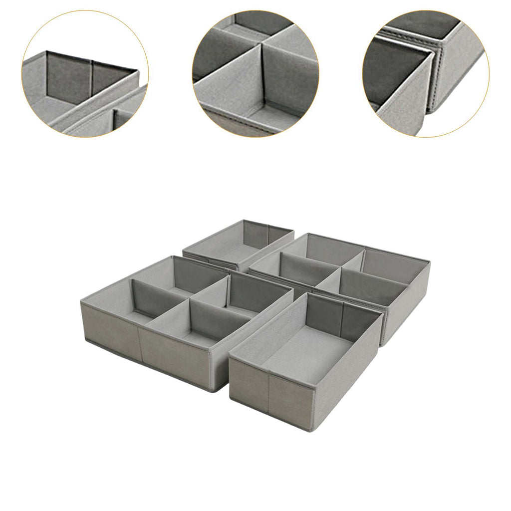 Maxbell 4x Underwear Socks Storage Boxes Drawer Organizer for Underwear Bra Lingerie height 10cm grey