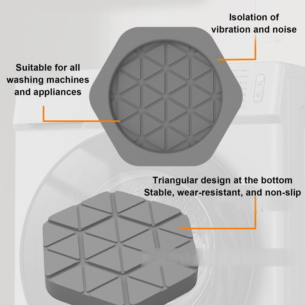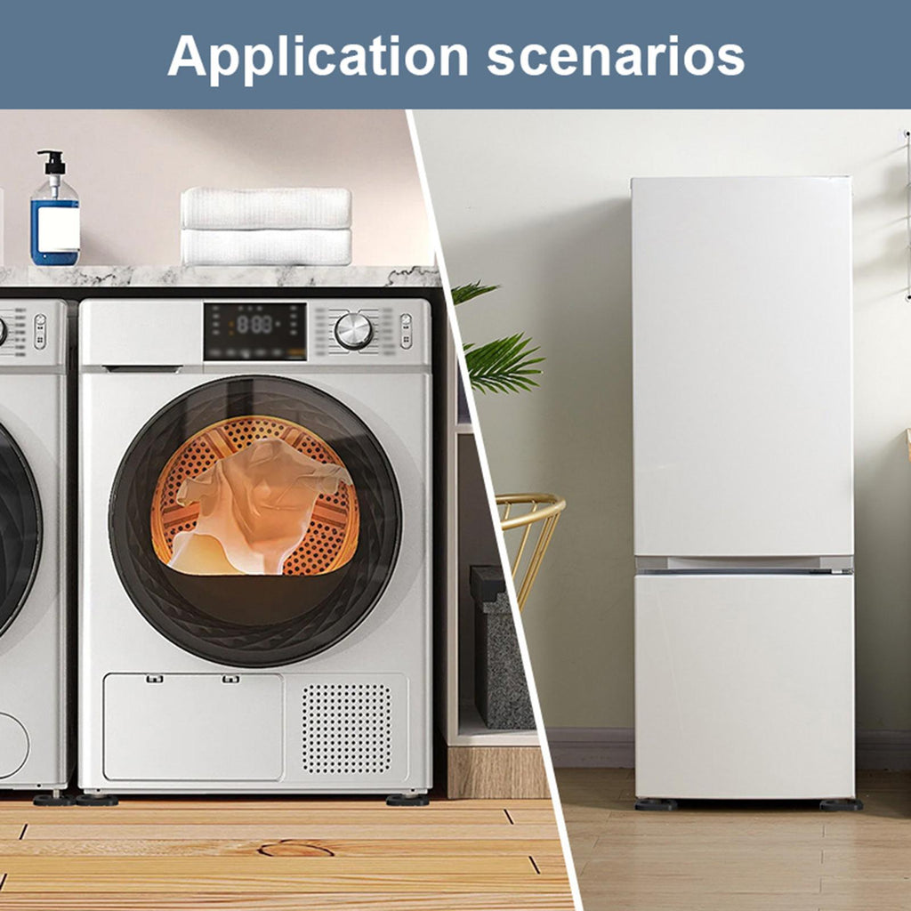 【Noise Reduction and Shock Absorption】: Made with high efficiency shock absorbing materials, these Washing Machine Feet Pads significantly reduce noise and vibration from your washing machine, providing a quieter home environment