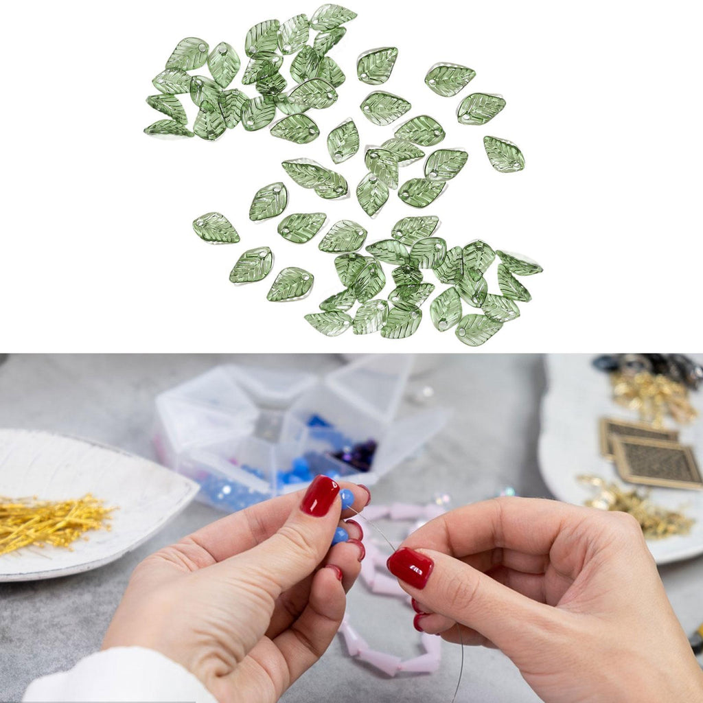 Maxbell 50Pcs Leaf Charms Decor Stylish Loose Beads for DIY Crafts Necklace Bracelet 0.9x1.3 cm Dark Green