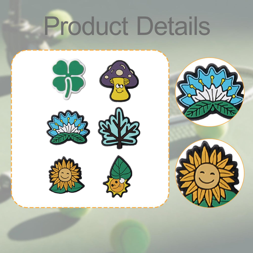 【Package Incuding】: The package includes 6 plant series tennis racket vibration dampeners, cute cartoon design, attractive and delicate