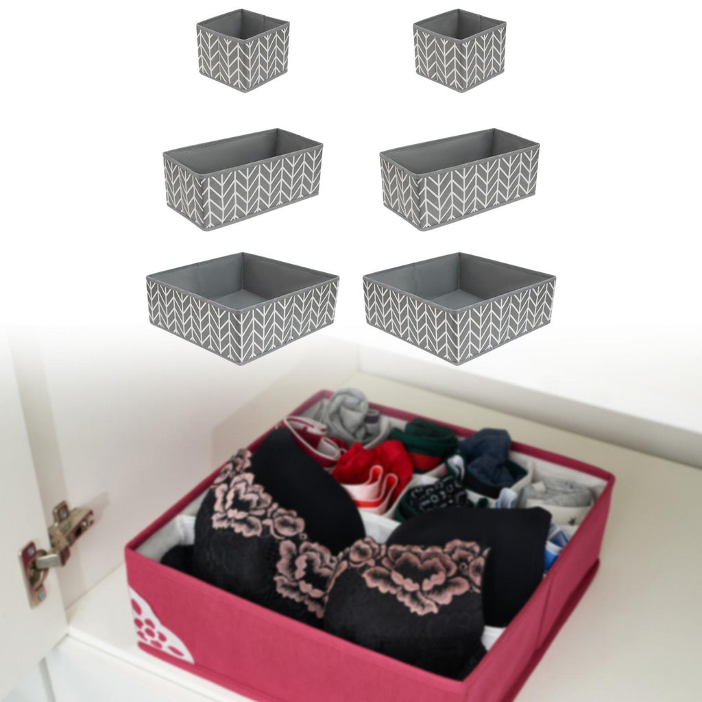 Maxbell 6x Drawer Organizer Storage Bins Closet Organization for Lingerie Bras Belts Branch Gray