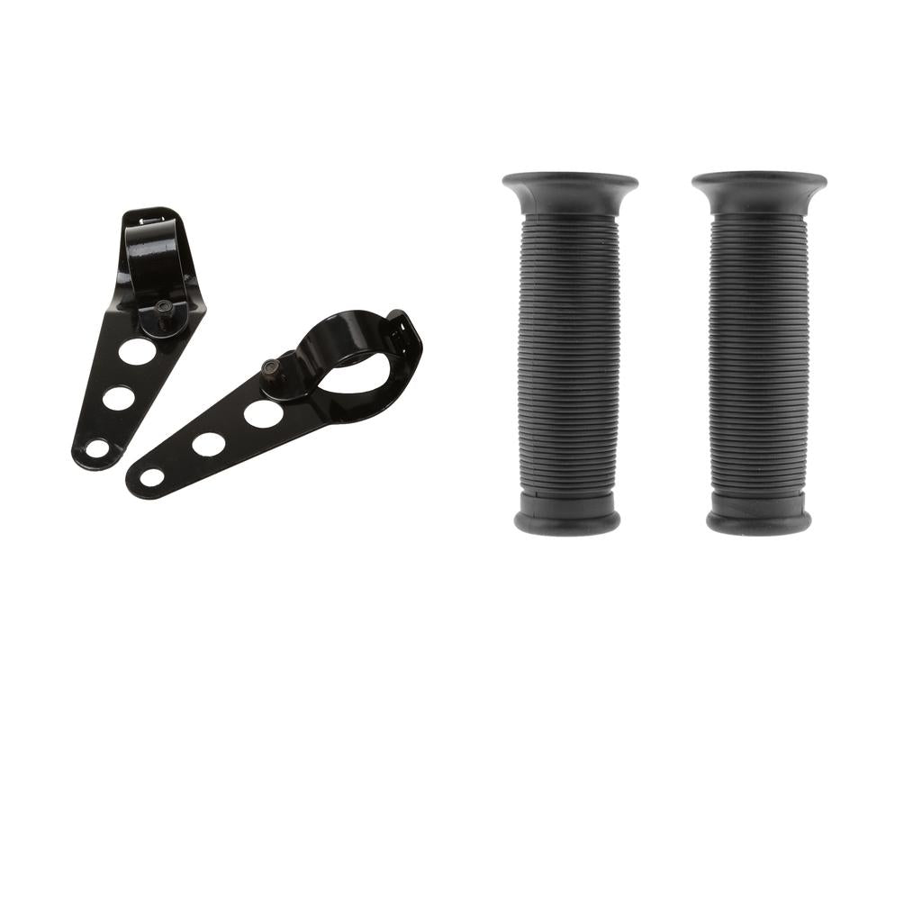 Maxbell 7/8" 22mm Motorcycle Handlebars Hand Grips + Headlight Mount Bracket