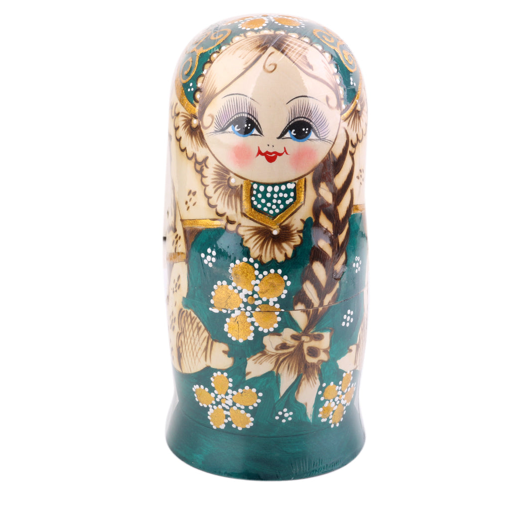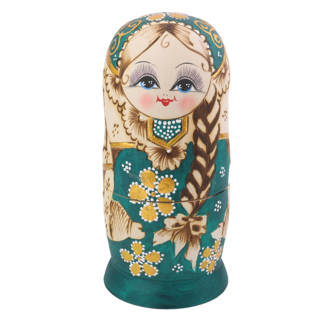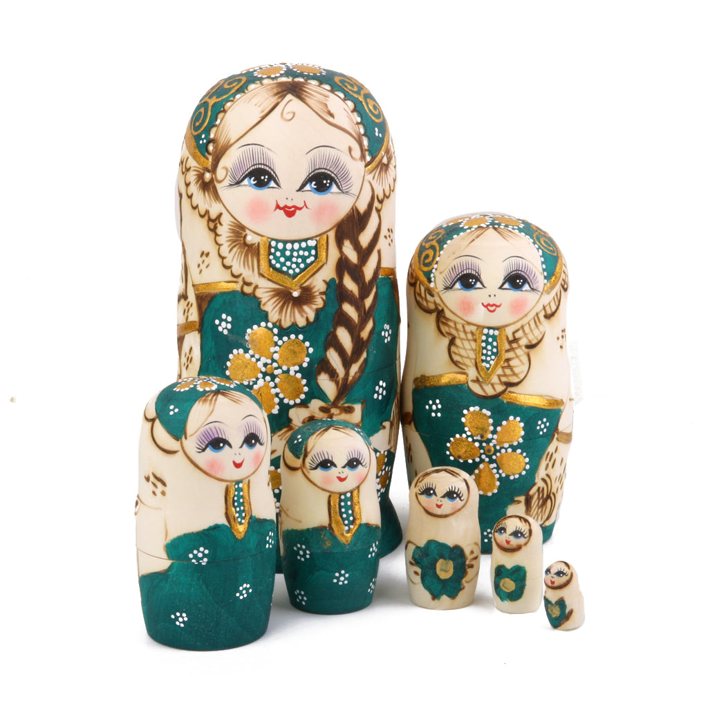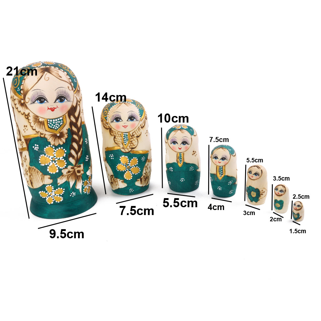Maxbell 7PCS Painted Wooden Girl with Braided Hair Russian Nesting Dolls