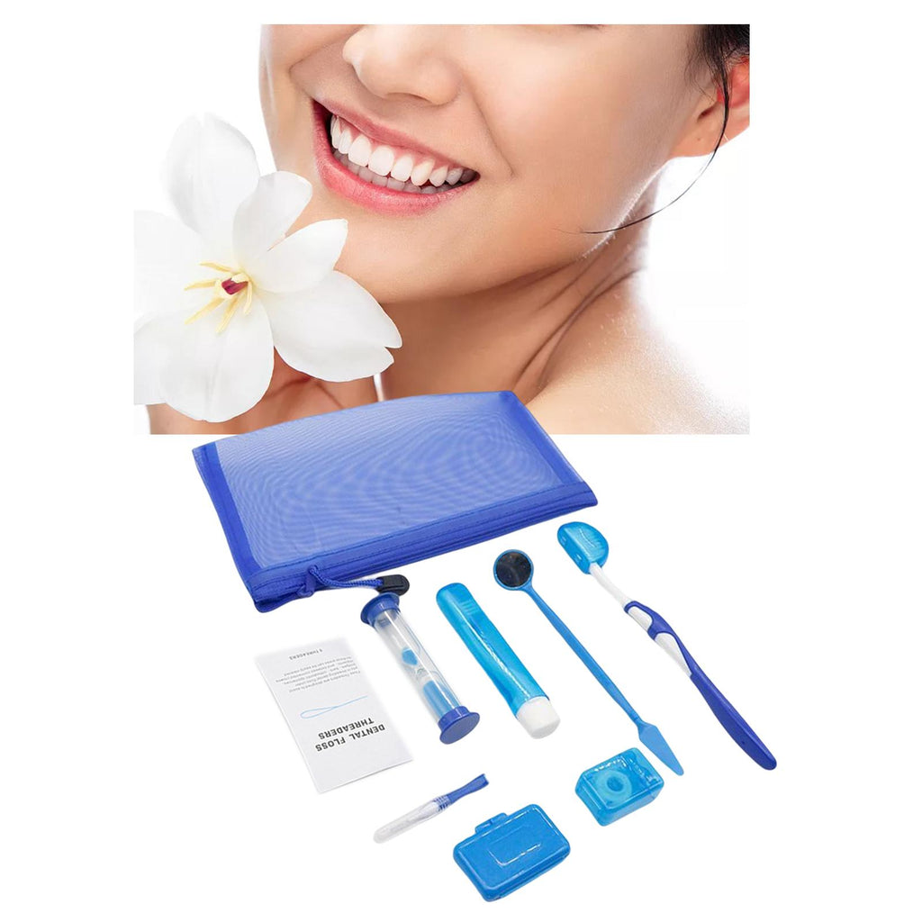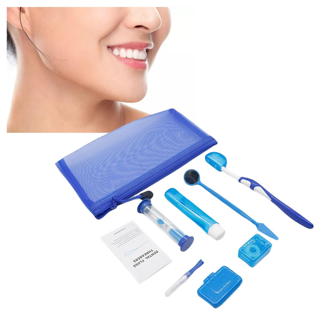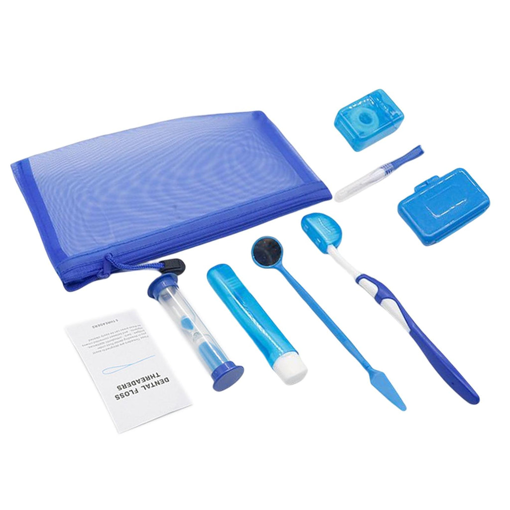 Maxbell 8Pcs teeth Care Kit Mouth Mirror Waxing Hourglass Timer Braces Cleaning Blue