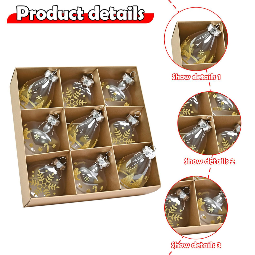 【Christmas Ornaments】: 1 box/9 pieces of Christmas ball ornaments with a hanging hole on the top, easy to hang, adding a strong festival atmosphere