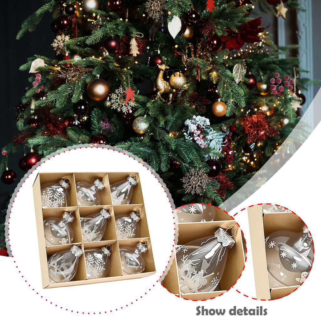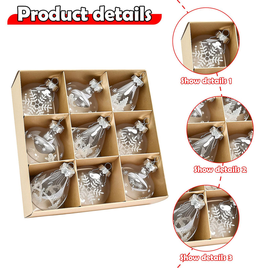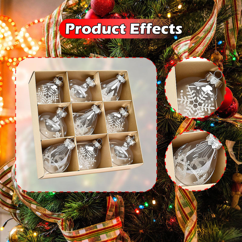 【Christmas Ornaments】: 1 box/9 pieces of Christmas ball ornaments with a hanging hole on the top, easy to hang, adding a strong festival atmosphere