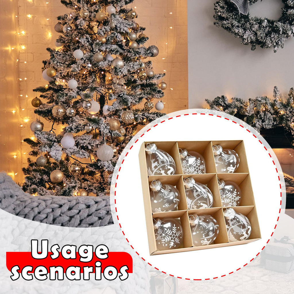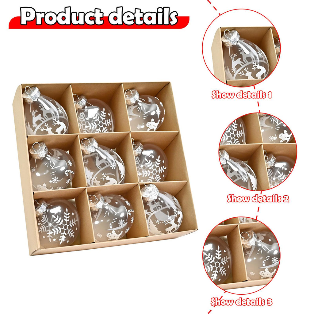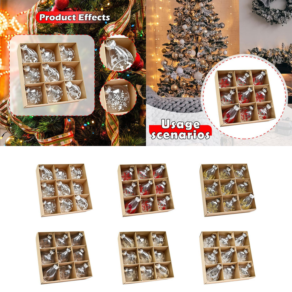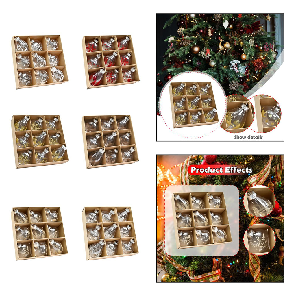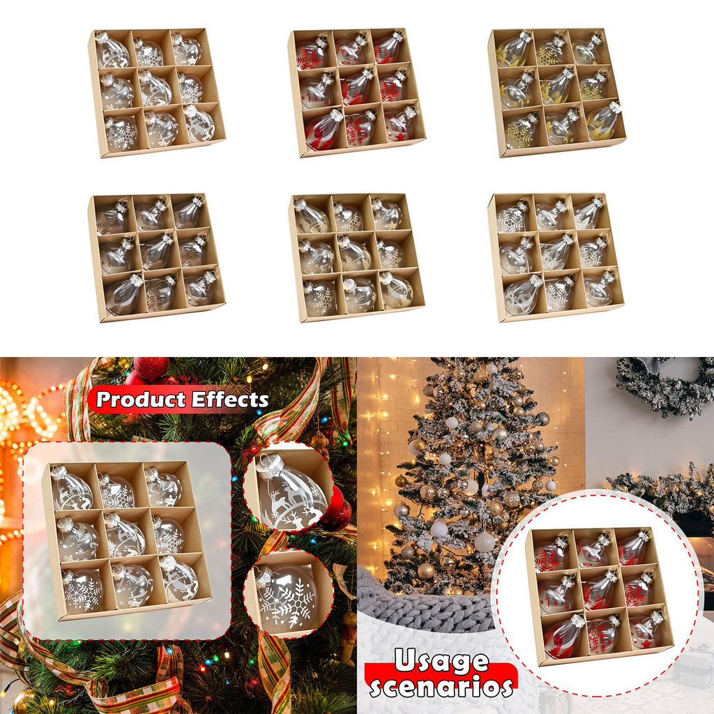 【Christmas Ornaments】: 1 box/9 pieces of Christmas ball ornaments with a hanging hole on the top, easy to hang, adding a strong festival atmosphere