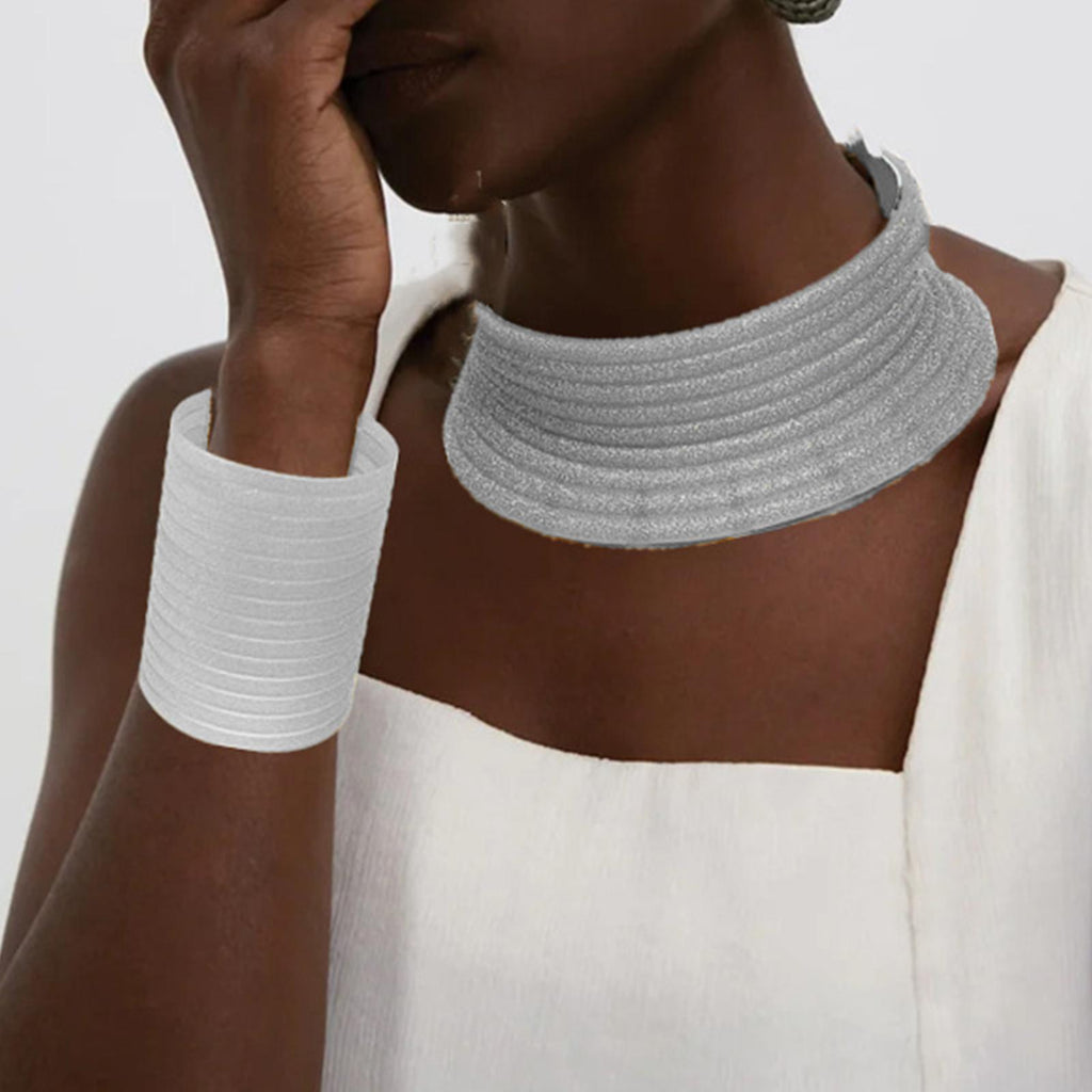 Necklace Bangle Jewelry Set: African national tribal choker bangle set, chunky and wide design, vintage and statement.