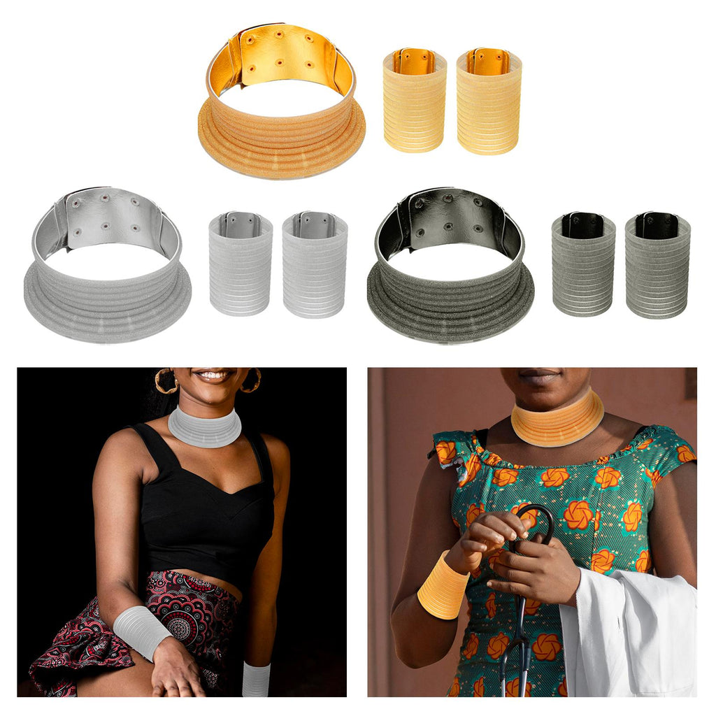 Necklace Bangle Jewelry Set: African national tribal choker bangle set, chunky and wide design, vintage and statement.