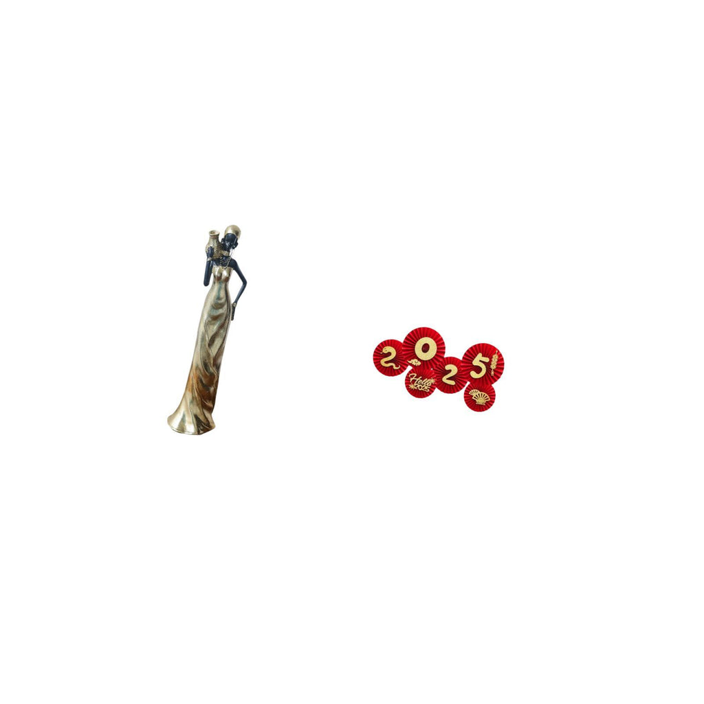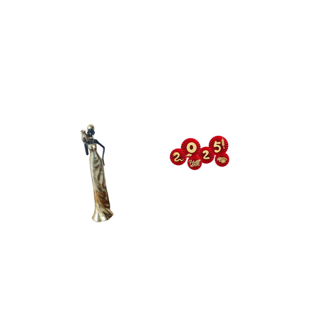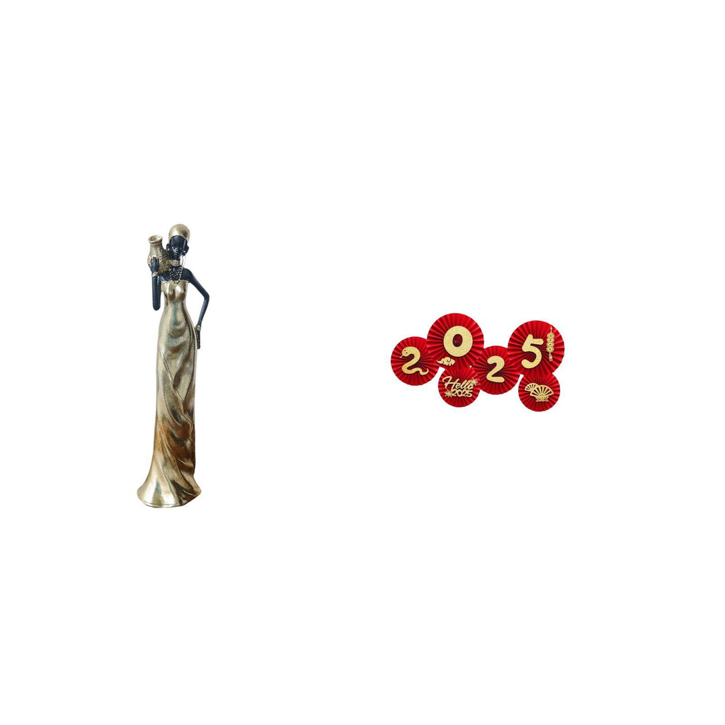 - 【Material】 The statue is made of resin material and the decoration is made of quality paper ensuring durability and long term decor 2. 【Decoration】 The African lady statue and the Chinese New Year paper fan are great for adding traditional and cultural sense to any room 3. 【Application】 Suitable for home office library studio hotel bookshelf fireplace door wall TV background window and more 4. 【Craftsmanship】 The statue is handmade hand painted with great workmanship and rich details while the paper fan features festive decor 5. 【Gift】 for housewarming gift and festival activities such as Mother's Day Christmas Thanksgiving New Year Spring Festival and gatherings