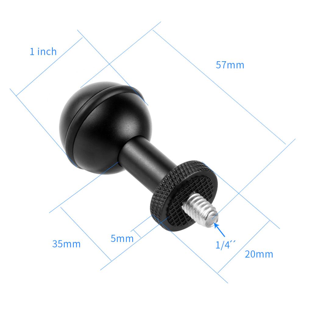 Max Aluminum 1 Inch Ball Head Diving Photography Bracket 1/4" Screw for Gopro