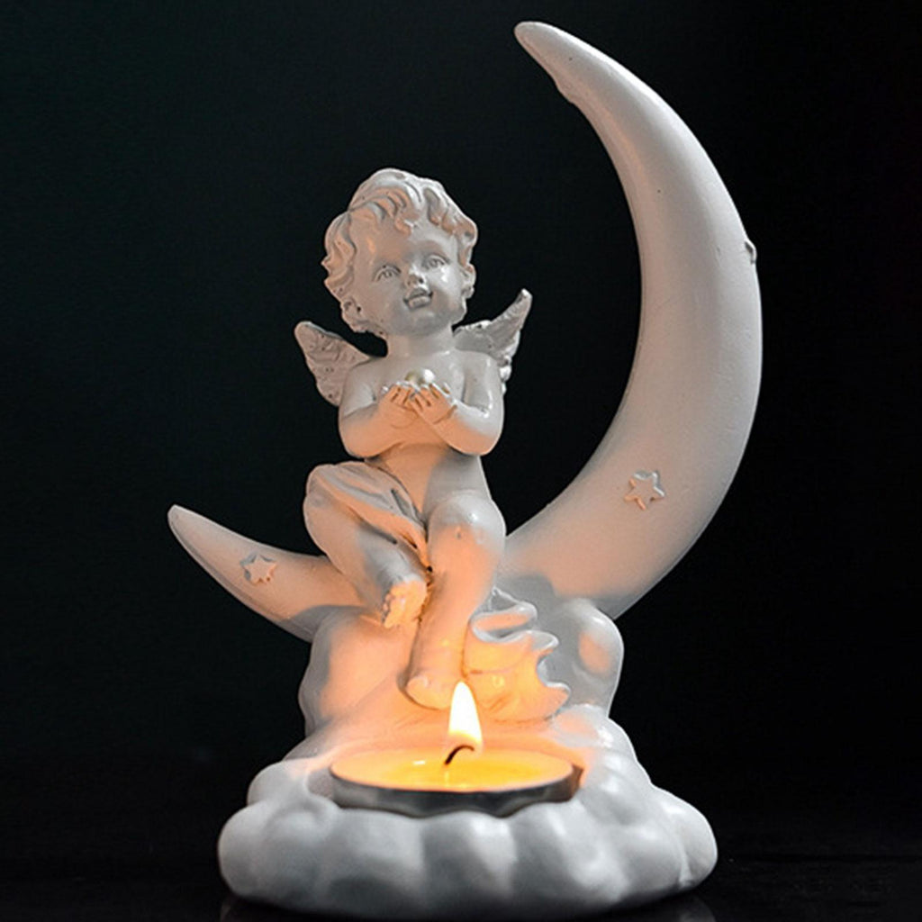 - Candle Holder - Made of high quality polished resin, this angel statue comes tea candle holder. This votive candle holder is a religious favor, baptism favor or christening favor the angelic image adds divinity, making it perfect favor for religious events.