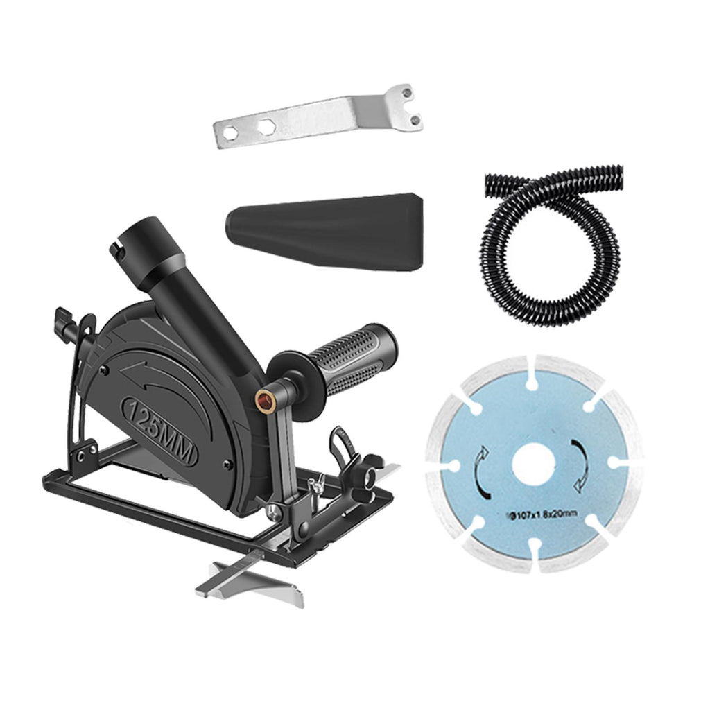 5pcs Set Includes: 1 Angle Grinder Holder, 1 Wrench, 1 Saw Blade, 1 Dust Pipe, 1 Dust Collect Bag.