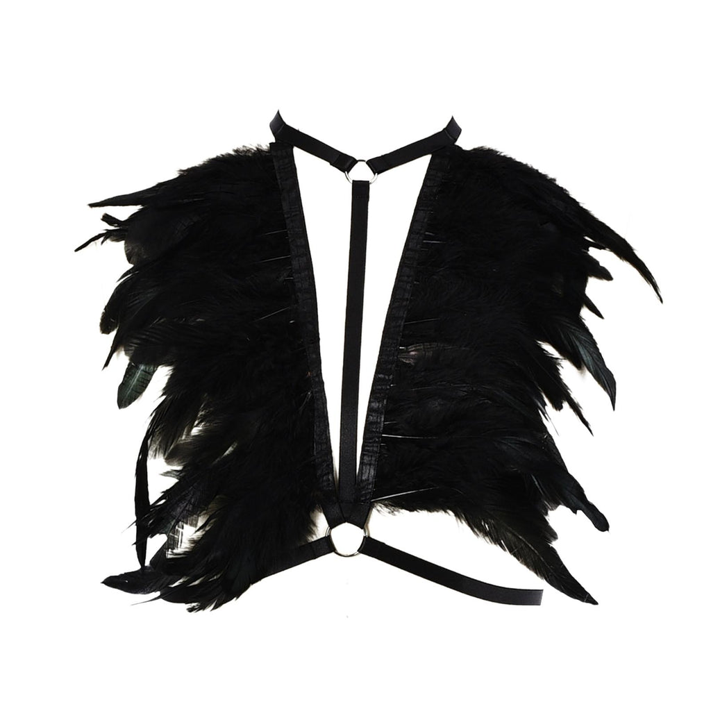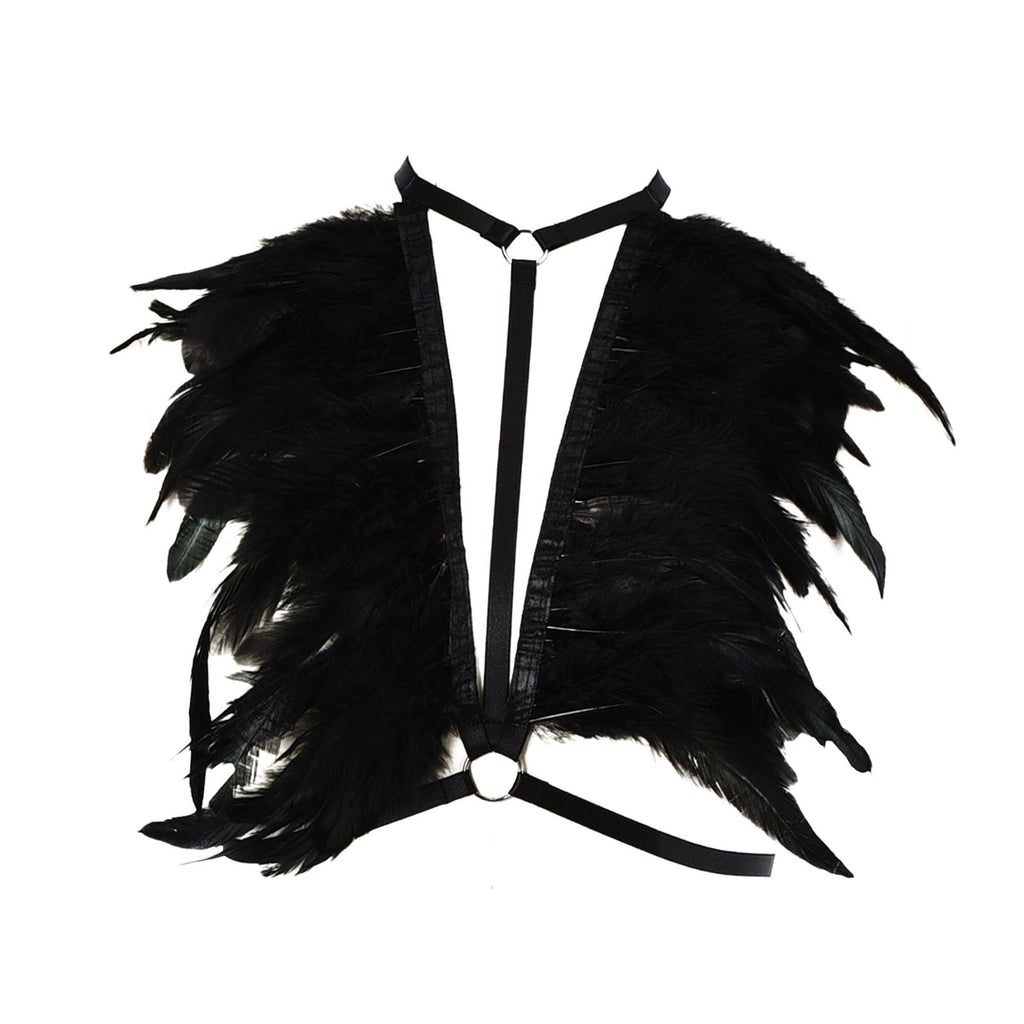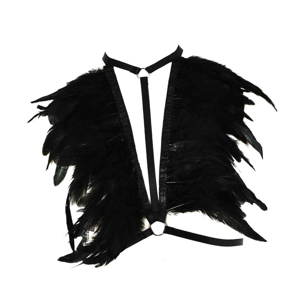 Maxbell Artificial Festival Feathers Harness Cosplay Bra for Photo Props Performance