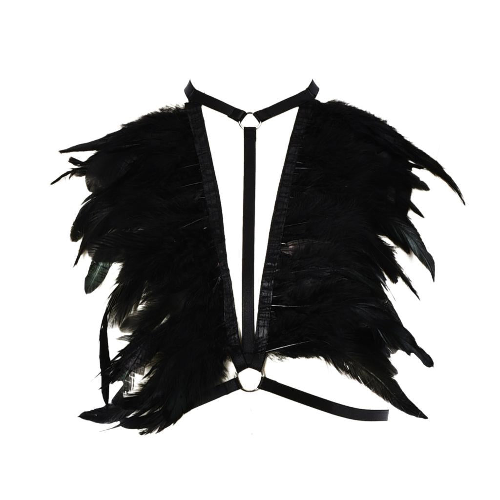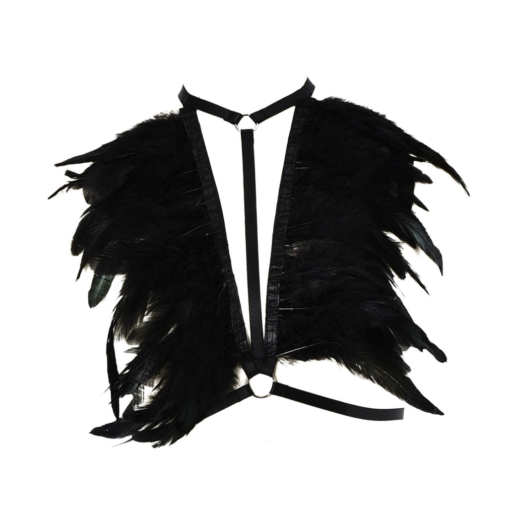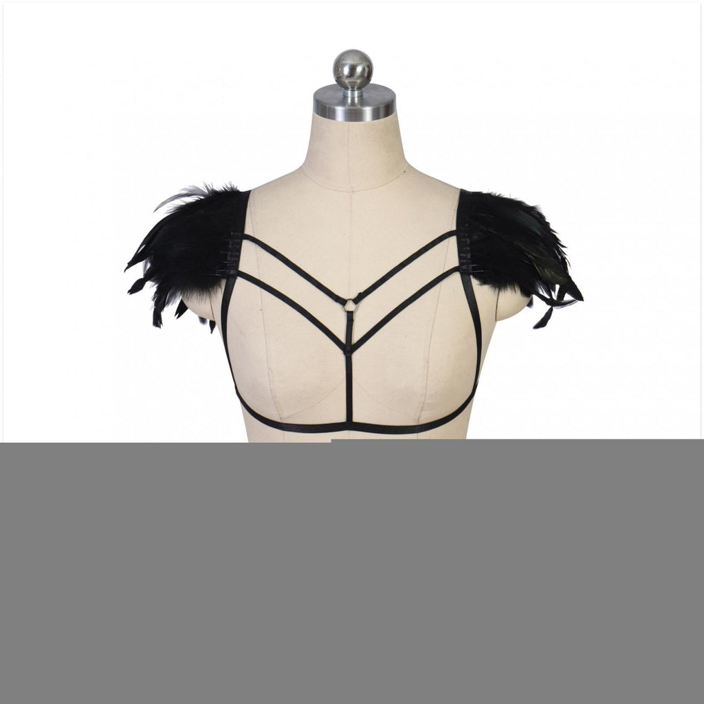 Maxbell Artificial Festival Feathers Harness Cosplay Bra for Photo Props Performance