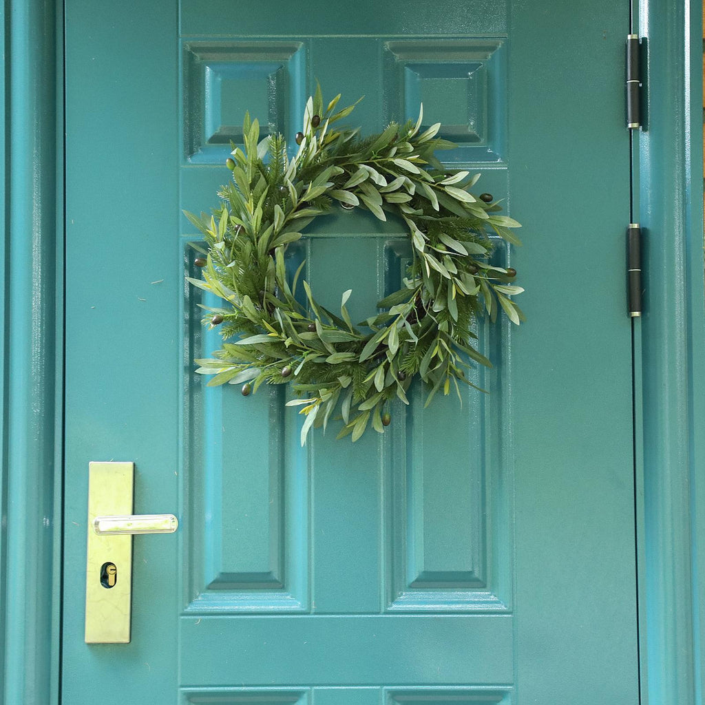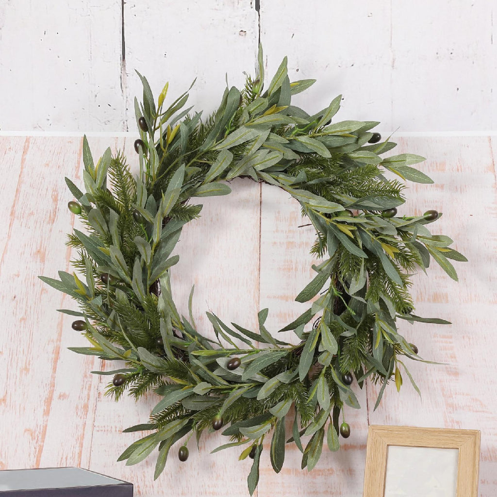【Versatile Use】: This round olive branch wreath is ideal for decorating New Year, Spring festival, Valentine's Day, Thanksgiving, weddings, walls, doors, stages, bedrooms, offices, hotels, dining rooms, gardens, balconies, fences, fireplaces, birthdays, parties, and so on