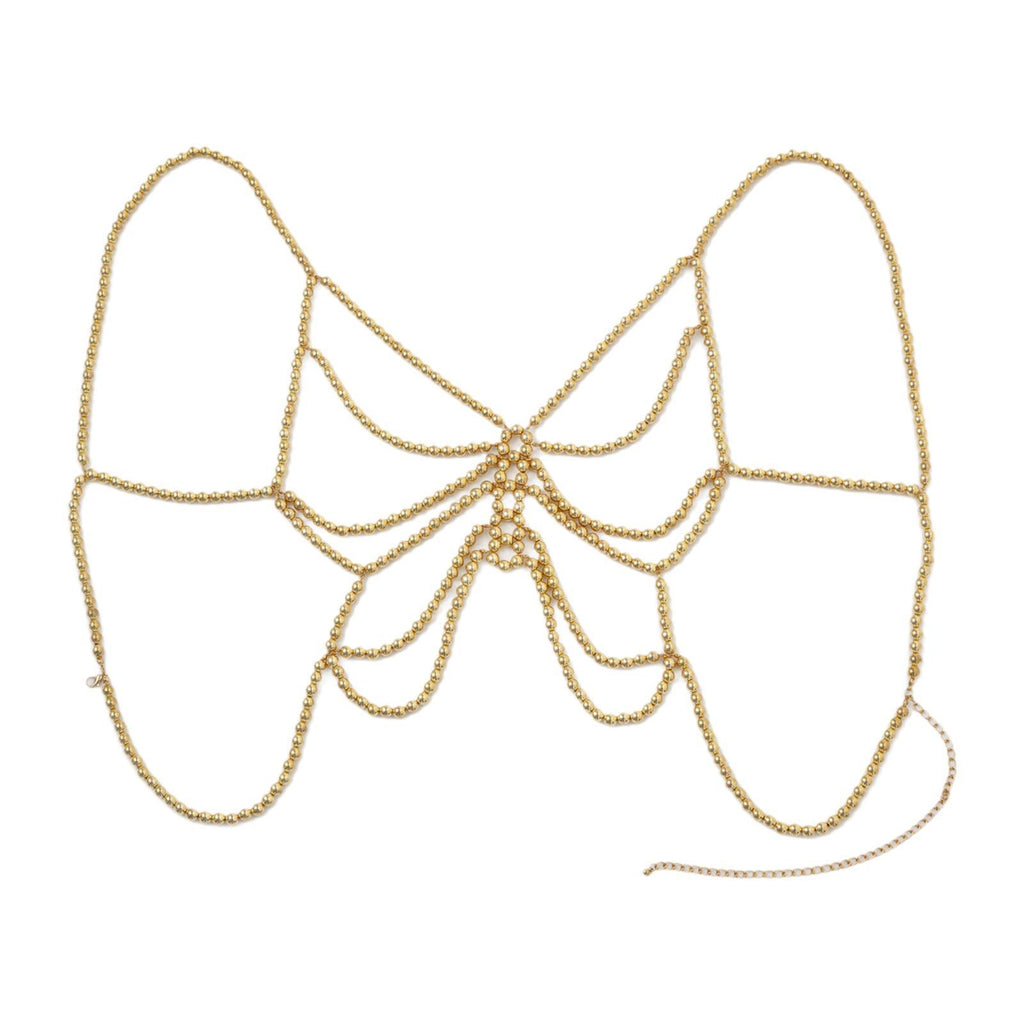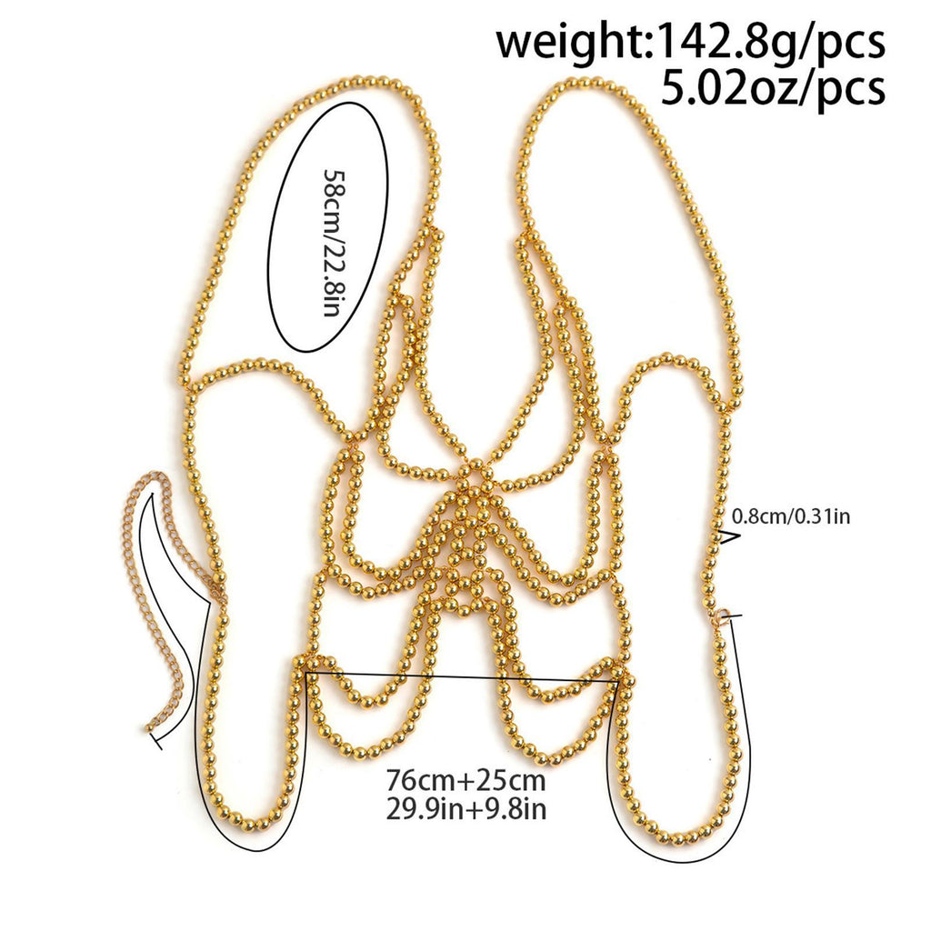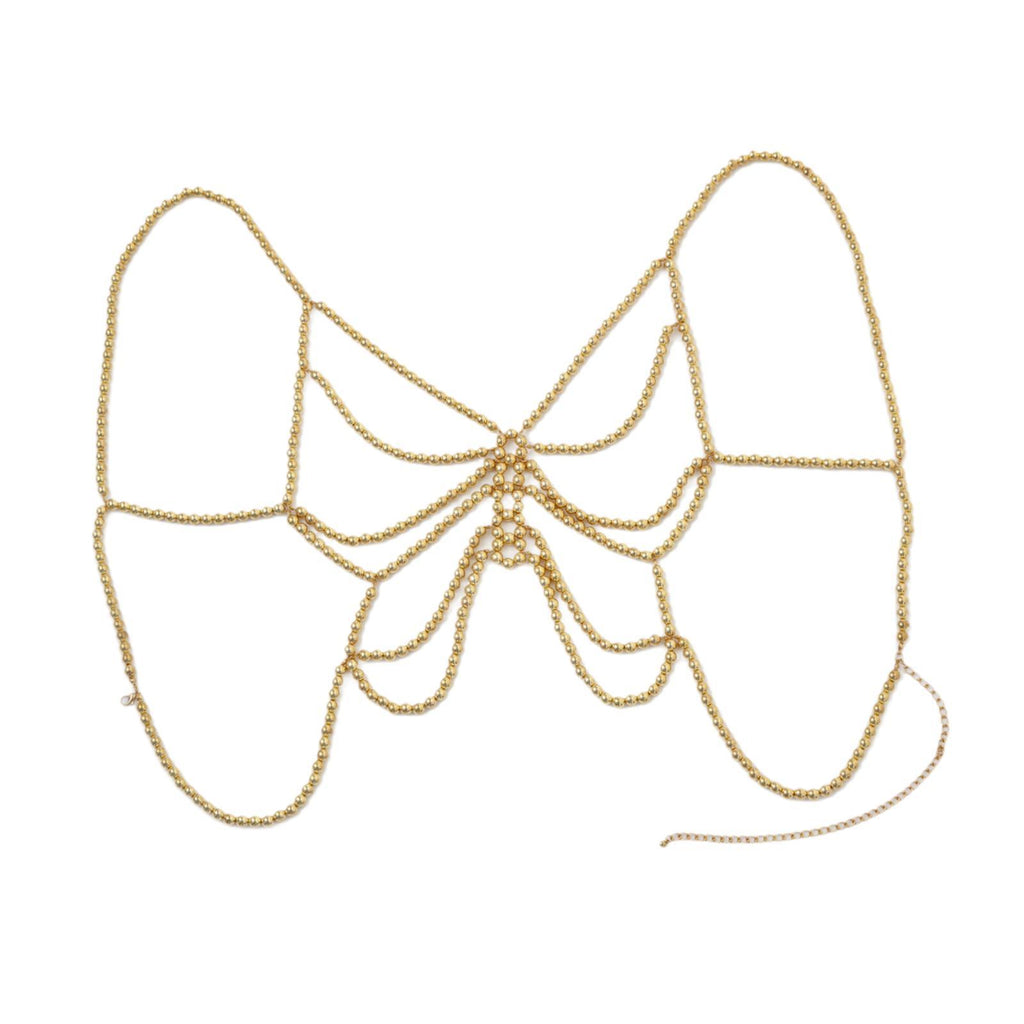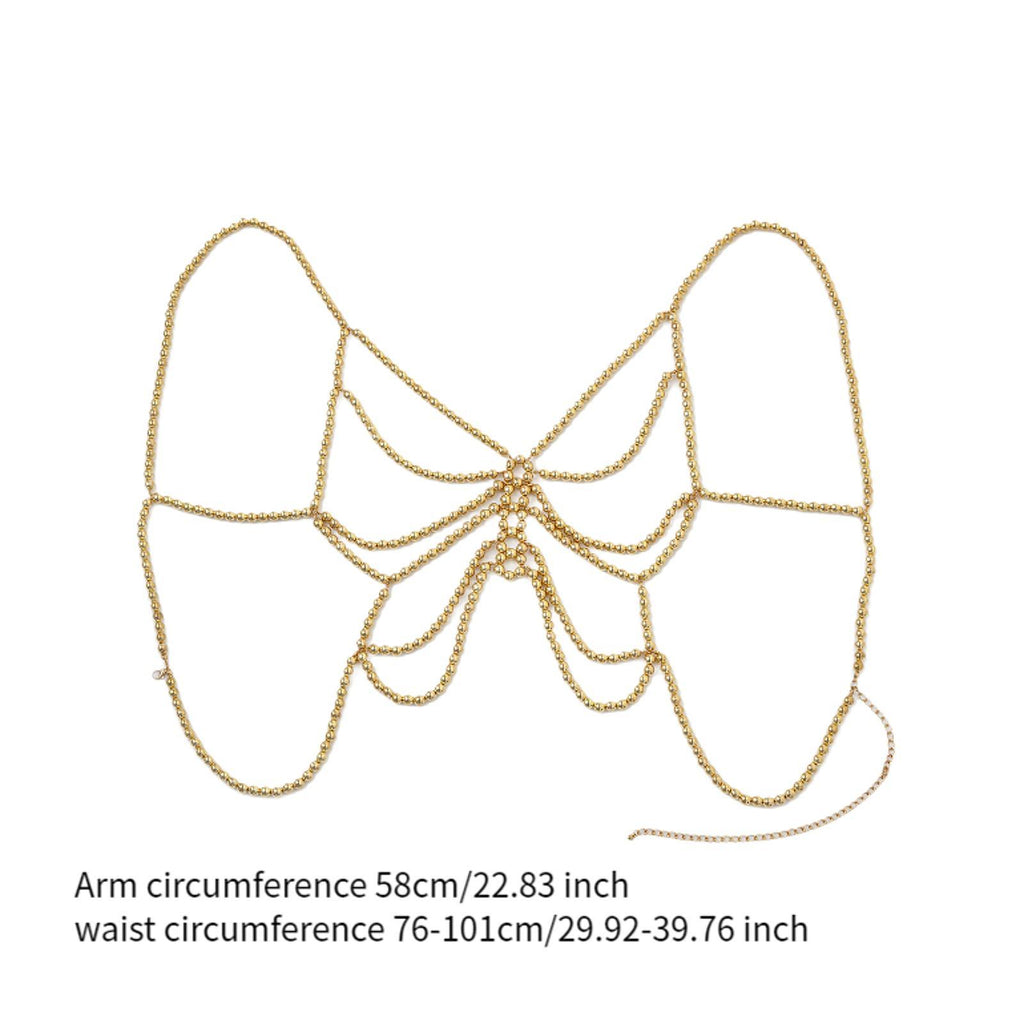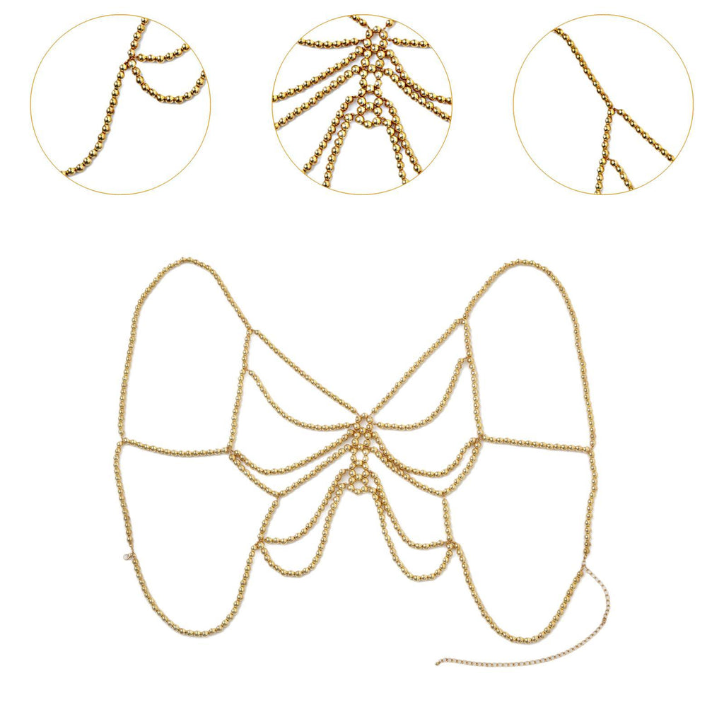 Maxbell Beaded Body Chain Bra Outfit Breathable Unique Body Accessories Bikini Chain Gold