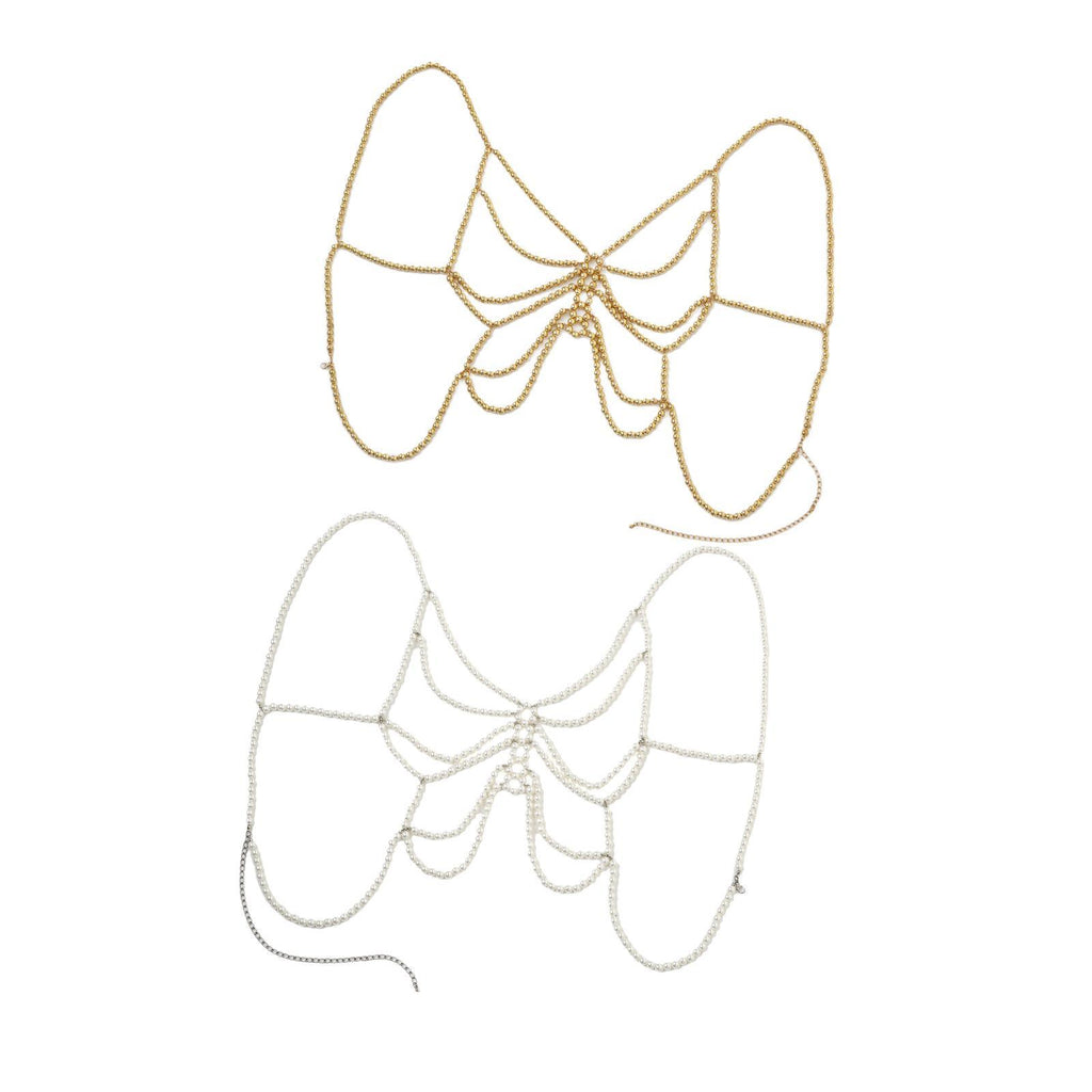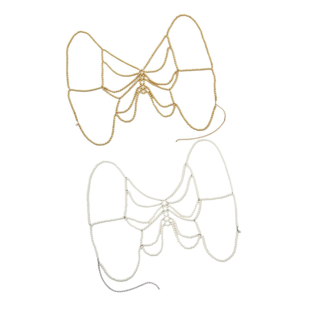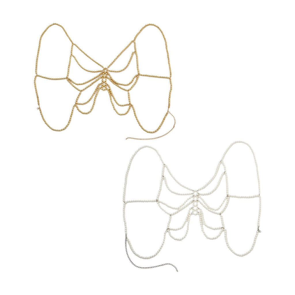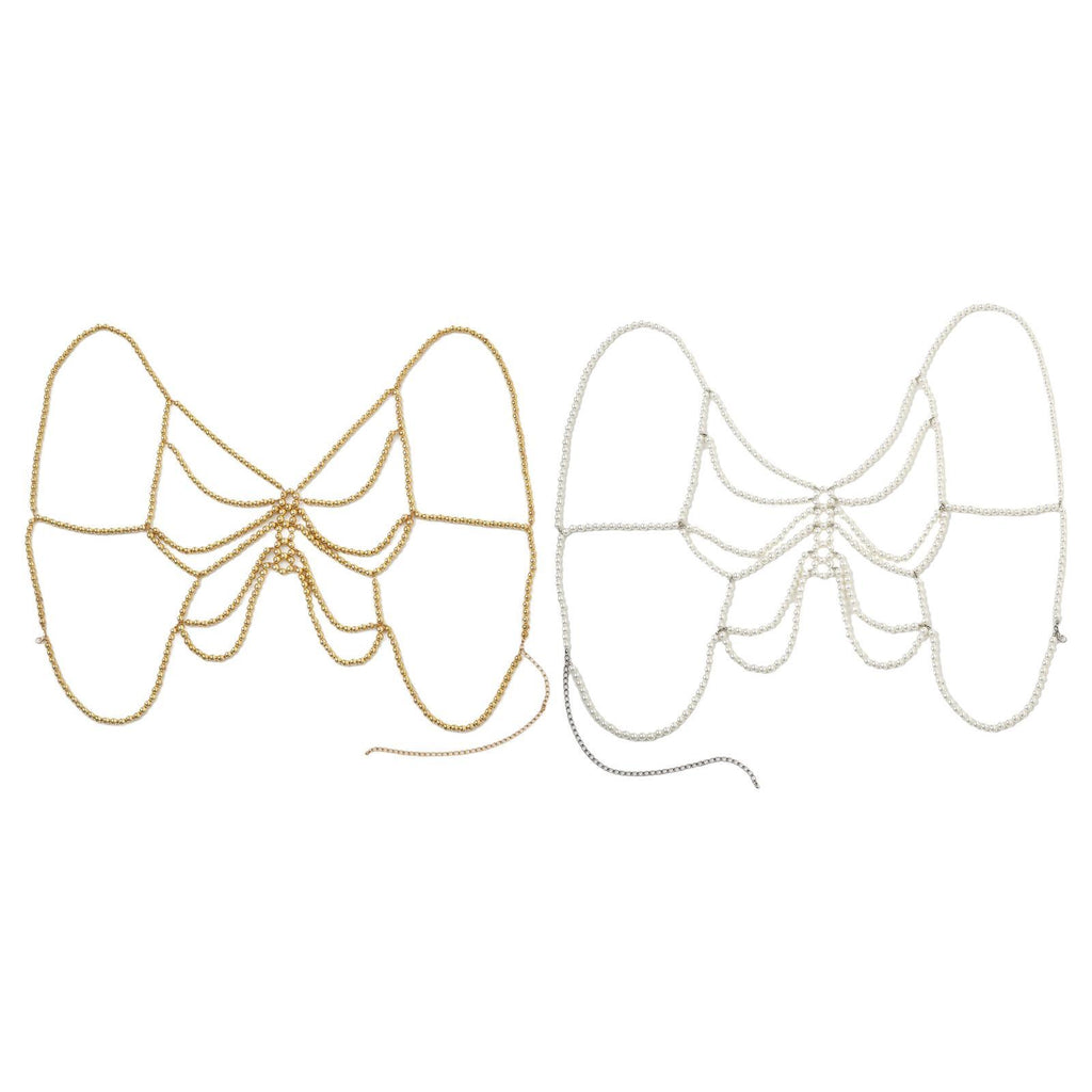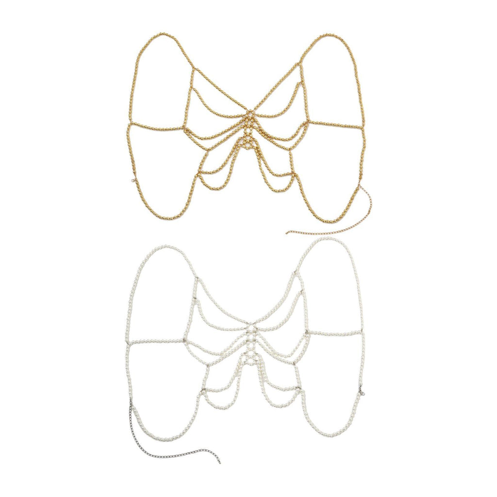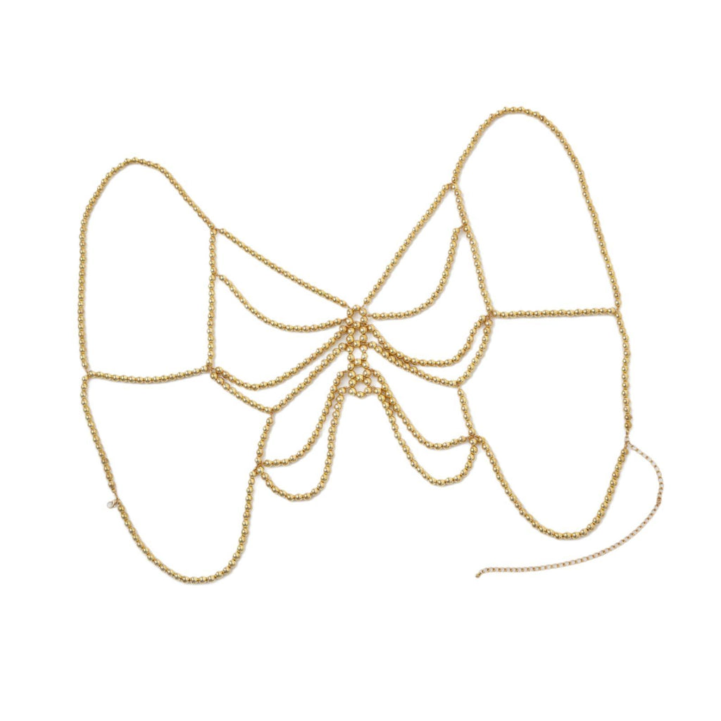 Maxbell Beaded Body Chain Bra Outfit Breathable Unique Body Accessories Bikini Chain Gold