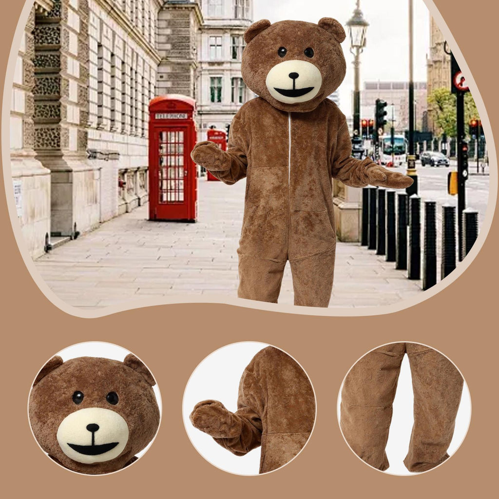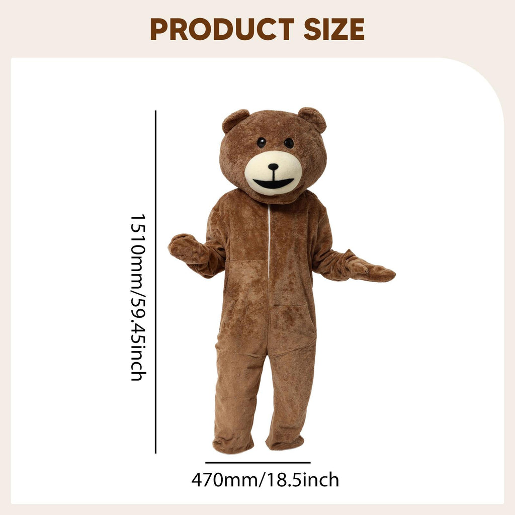 - 【Complete Bear Costume Set】: Adult Cartoon Costume, including a jumpsuit and headwear. Made from comfortable and lightweight polyester fiber, it allows for ease of movement, ensuring you can entertain and interact with the crowd for extended periods