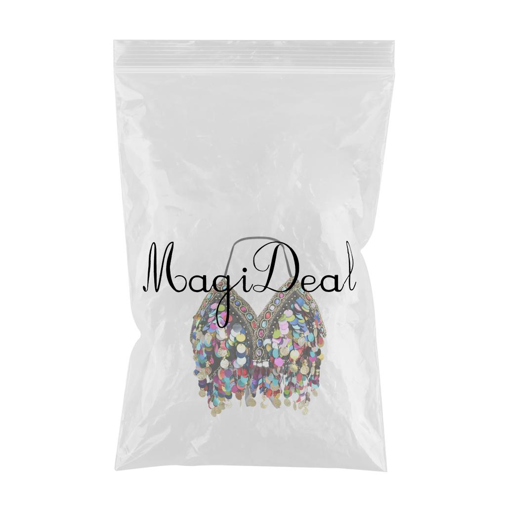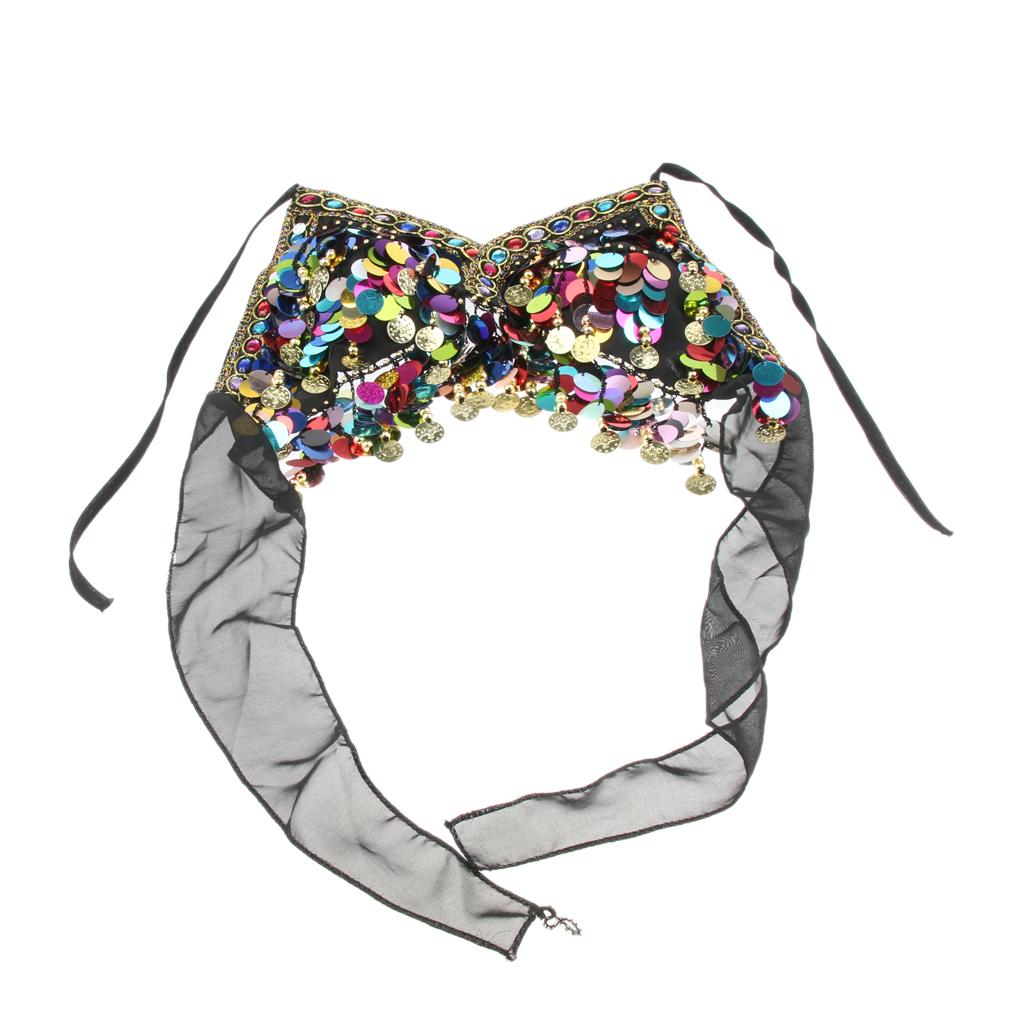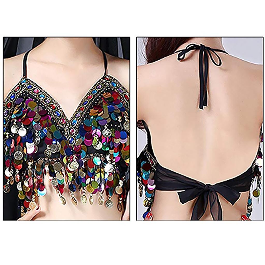 Maxbell Maxbell Belly Dance Beaded Bra Sequins Tassel Top Sexy Dancing Singer Costume Black