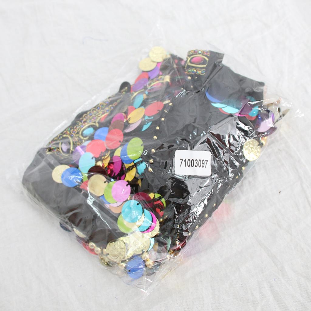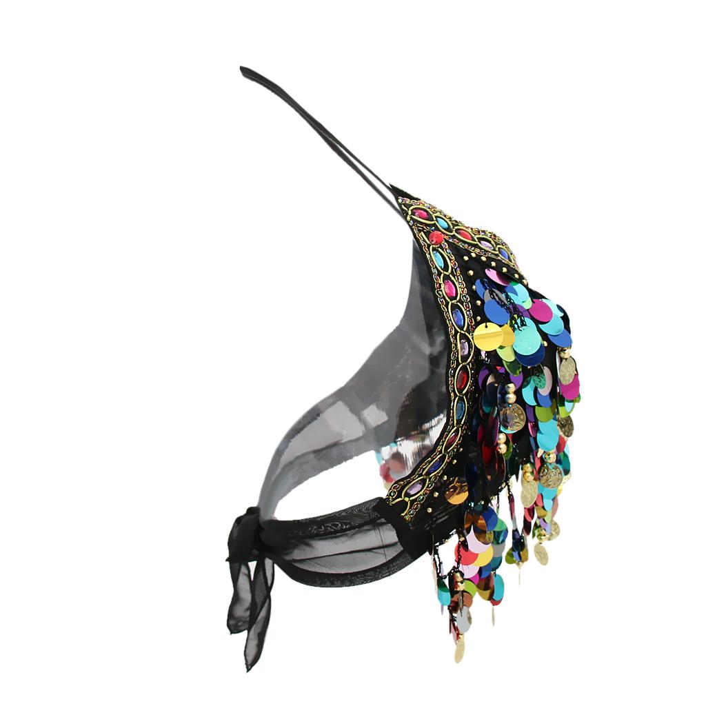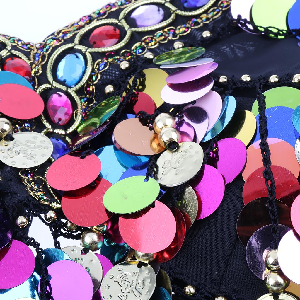 Embellished with colorful paillettes, beads and metal coins, very sparkling under stage lights