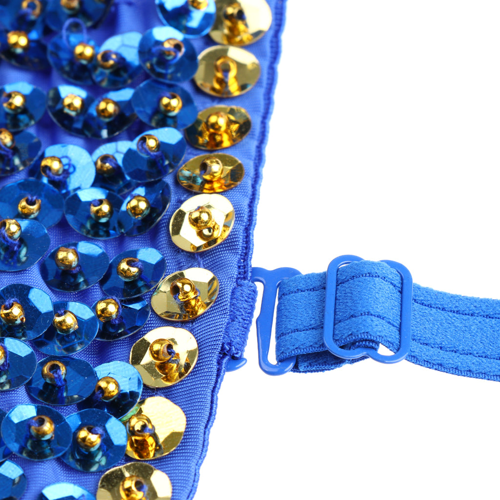 Maxbell Maxbell Belly Dance Beaded Bra Sequins Tassel Top Sexy Dancing Singer Costume Blue